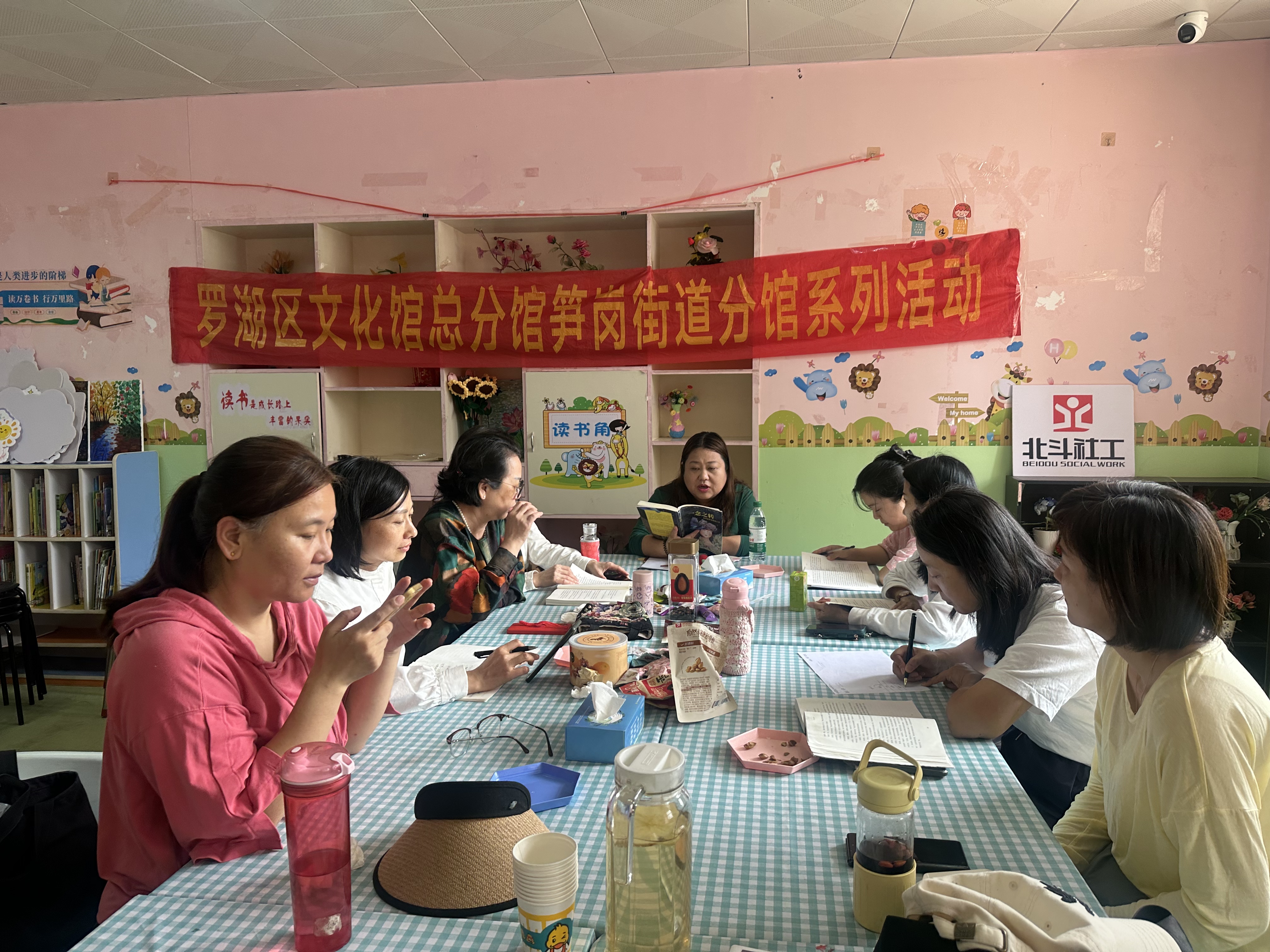 为贯彻落实“百千万工程”发展,2025年4月10日上午,笋岗街道湖景社区党委的精心指导下,湖景社区党群服务中心、深圳市北斗社会工作服务中心联合开展了一场《一念之转》共读坊系列活动。共吸引了8位全职妈妈参加。