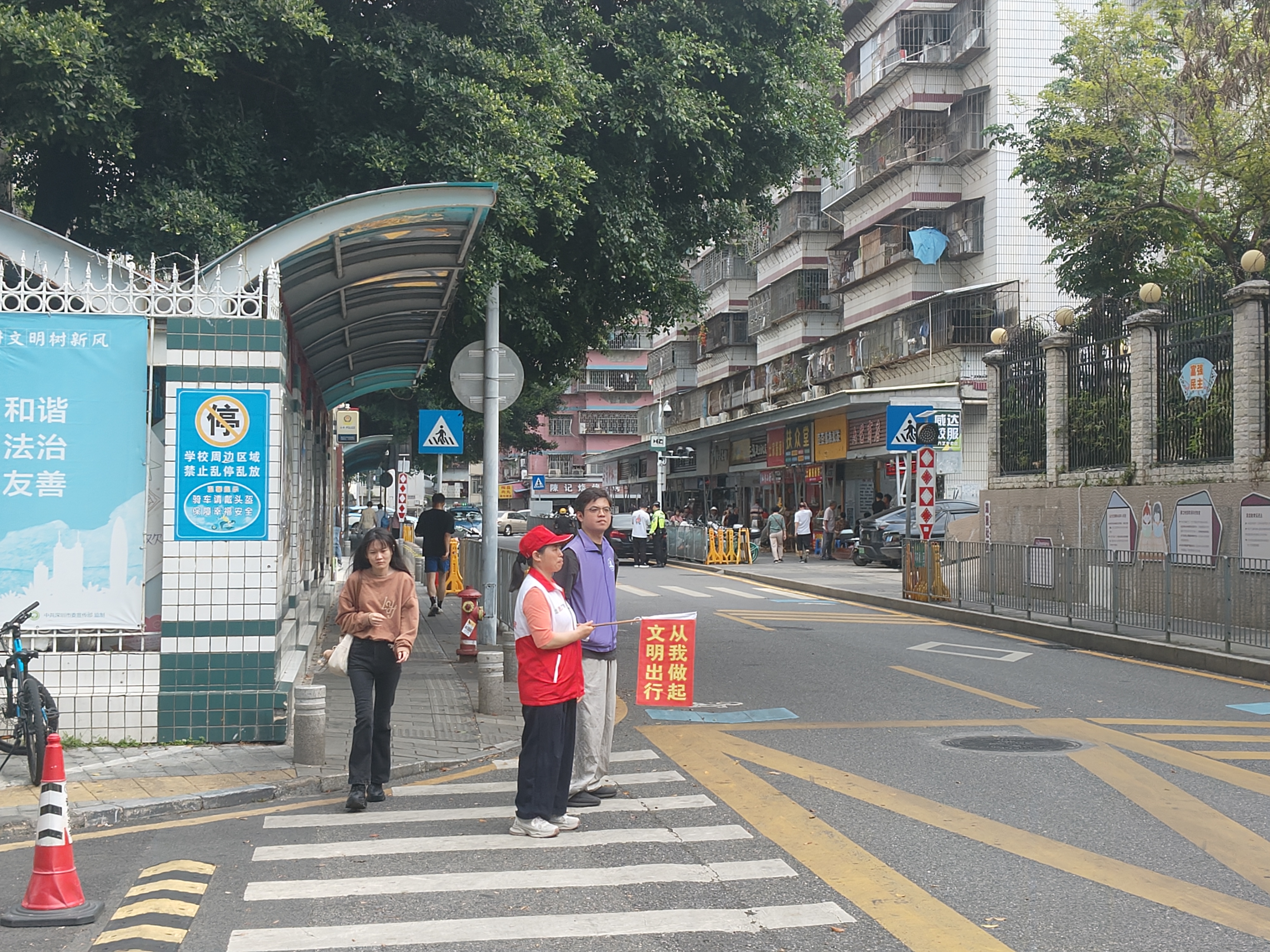 为了维护深圳市教育幼儿园交通安全,落实“百千万工程”,2025年4月21上午,在湖景社区党委指导下、湖景社区党群服务中心、湖景社区新时代文明实践站驻点北斗社工举办湖景社区“绿灯行动,志愿领航”活动。