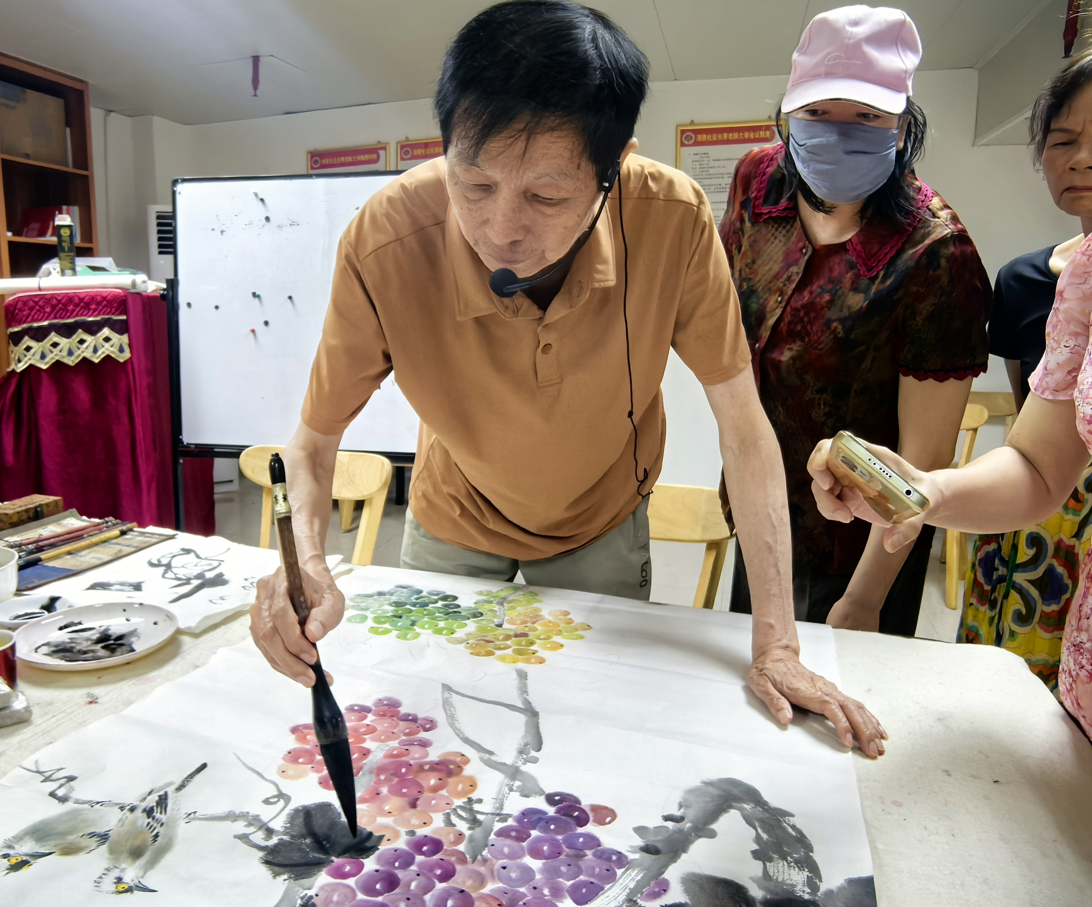 湖景社区开展长青老年人大学国画班6月13日活动