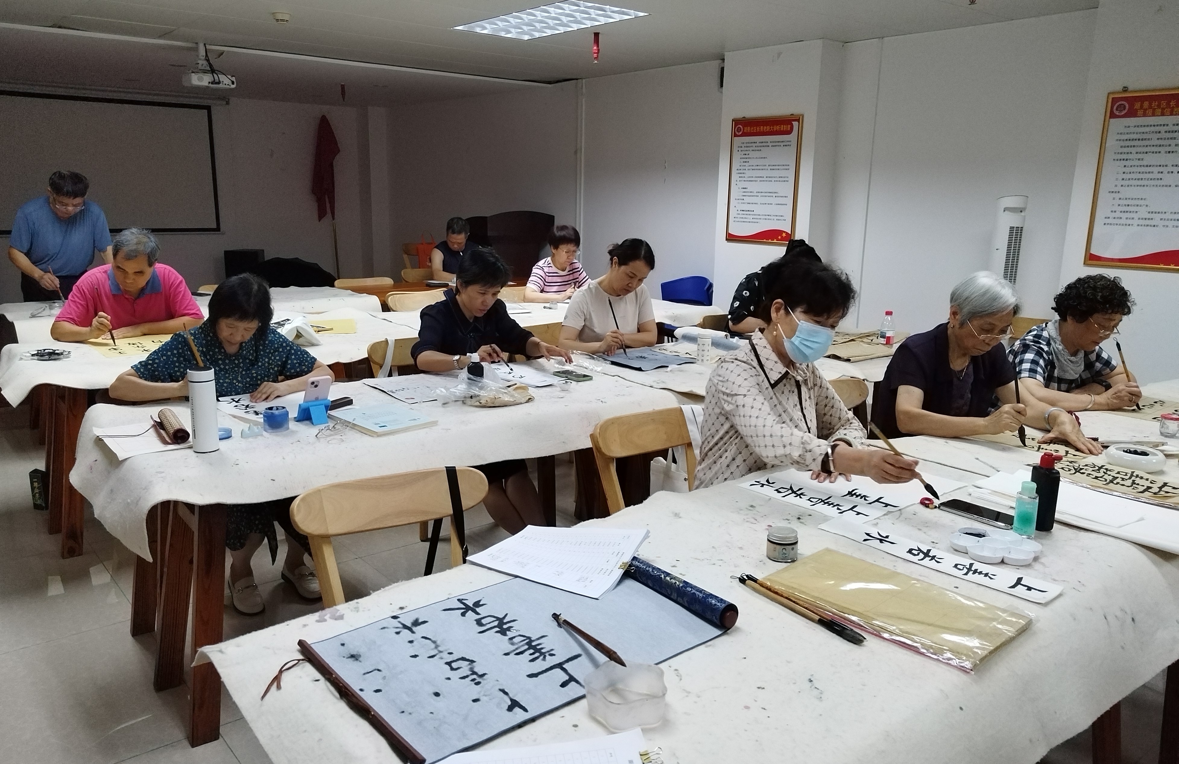 2025年6月19日上午,湖景社区在碧湖花园居民小组党群服务站开展湖景社区长青老年人大学书法班活动,通过举办老年人书法课程,旨在促进老年人的艺术创作与 交流,弘扬中华传统文化,提高老年人的生活质量和幸福感。共有11位居民参与。