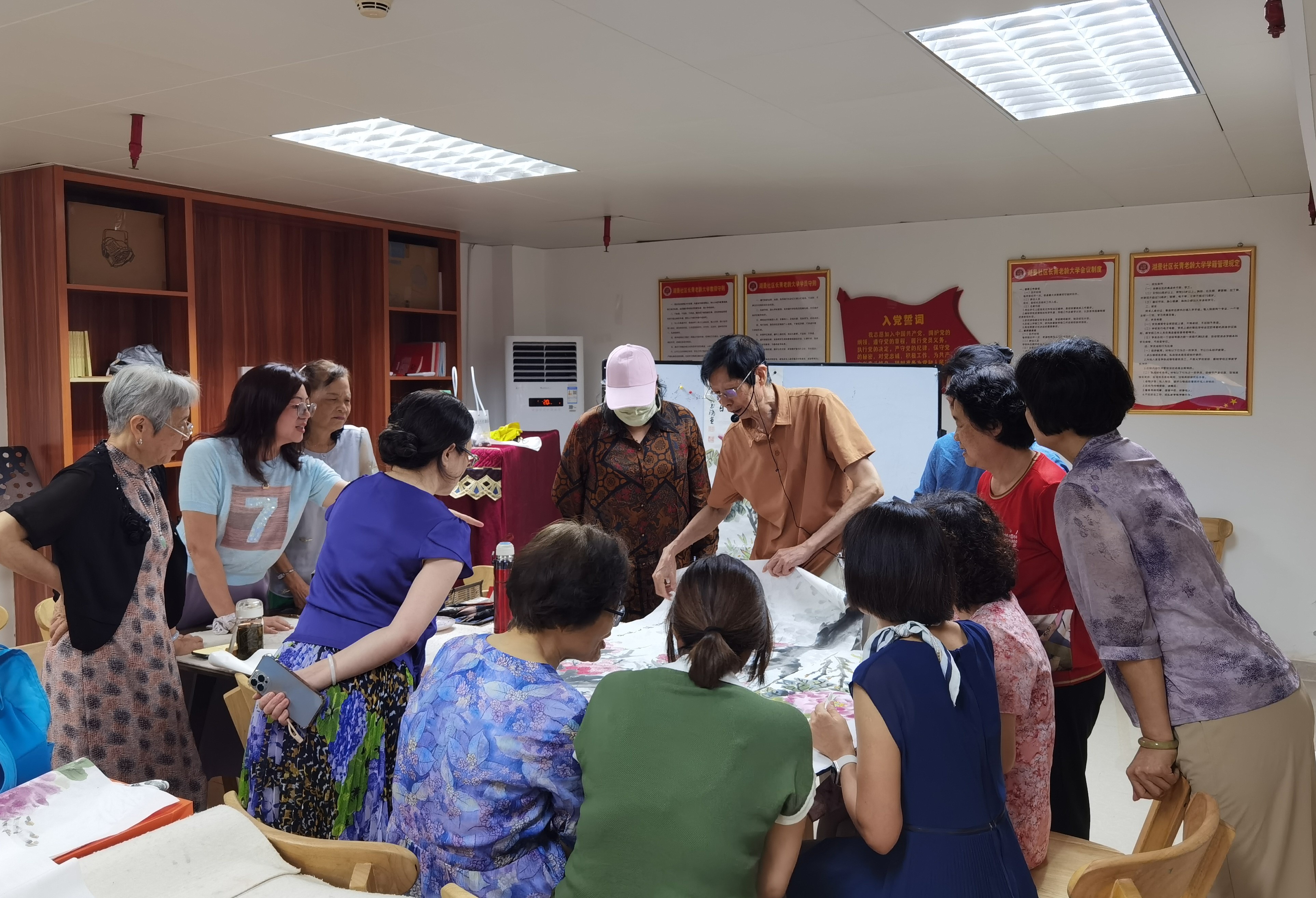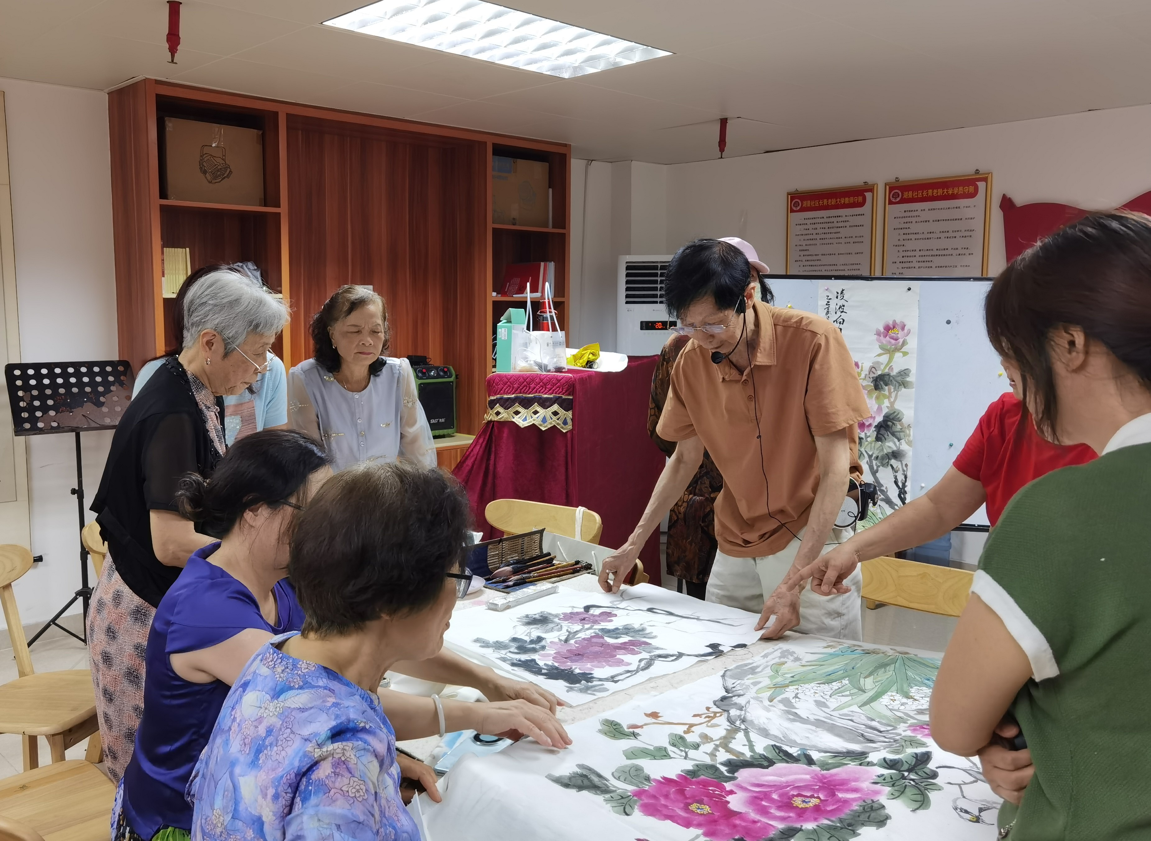 2025年7月4日下午,湖景社区在湖景社区碧湖花园居民小组党群服务站开展长青老年人大学国画班,活动共有12位居民参与。国画作为中华民族的文化瑰宝,为了让社区居民能够亲身沉浸并感受传统文化的独特魅力。通过举办老年人国画课程,旨在促进老年人的艺术创作与交流,弘扬中华传统文化,提高老年人的生活质量和幸福感。