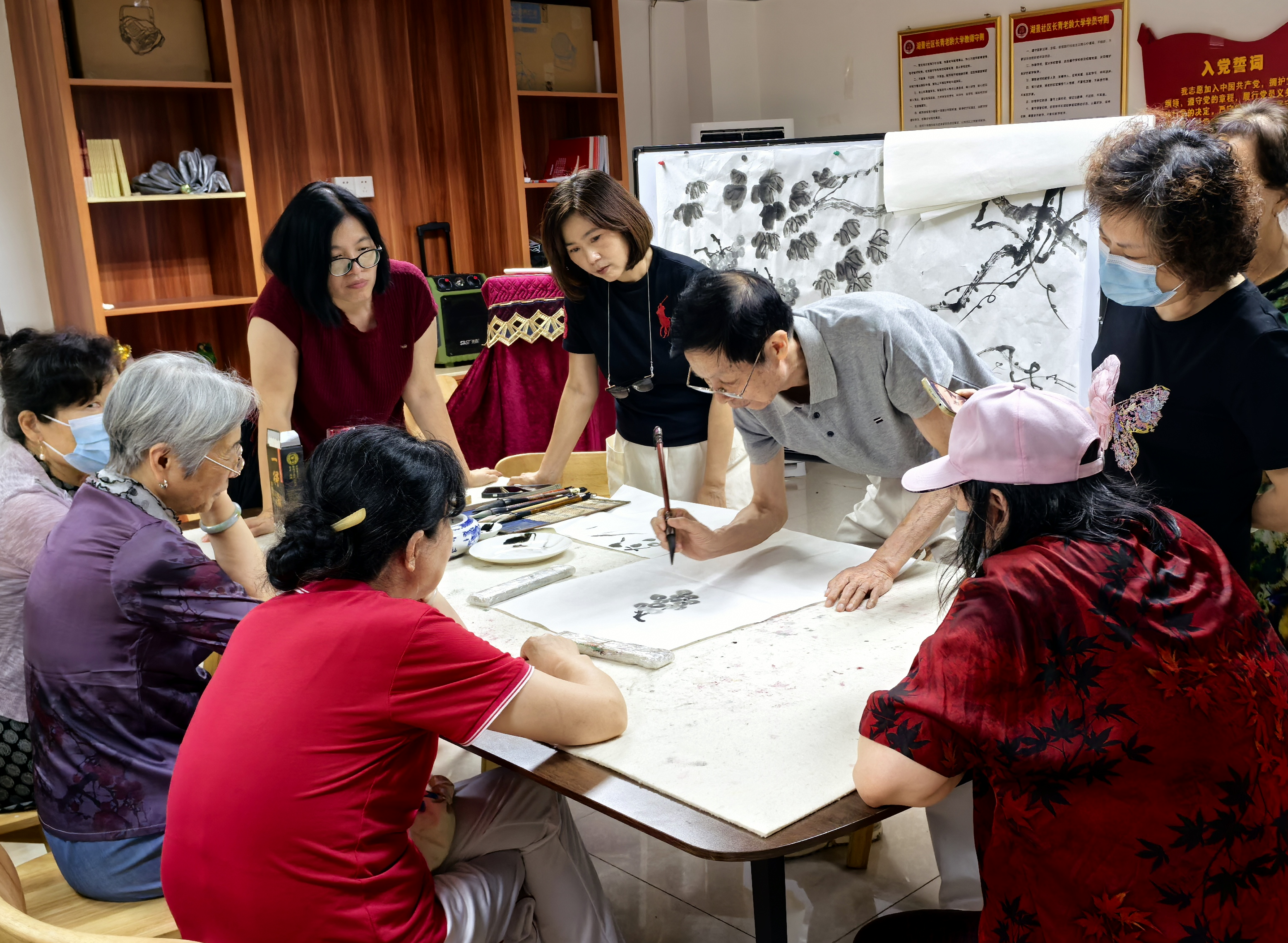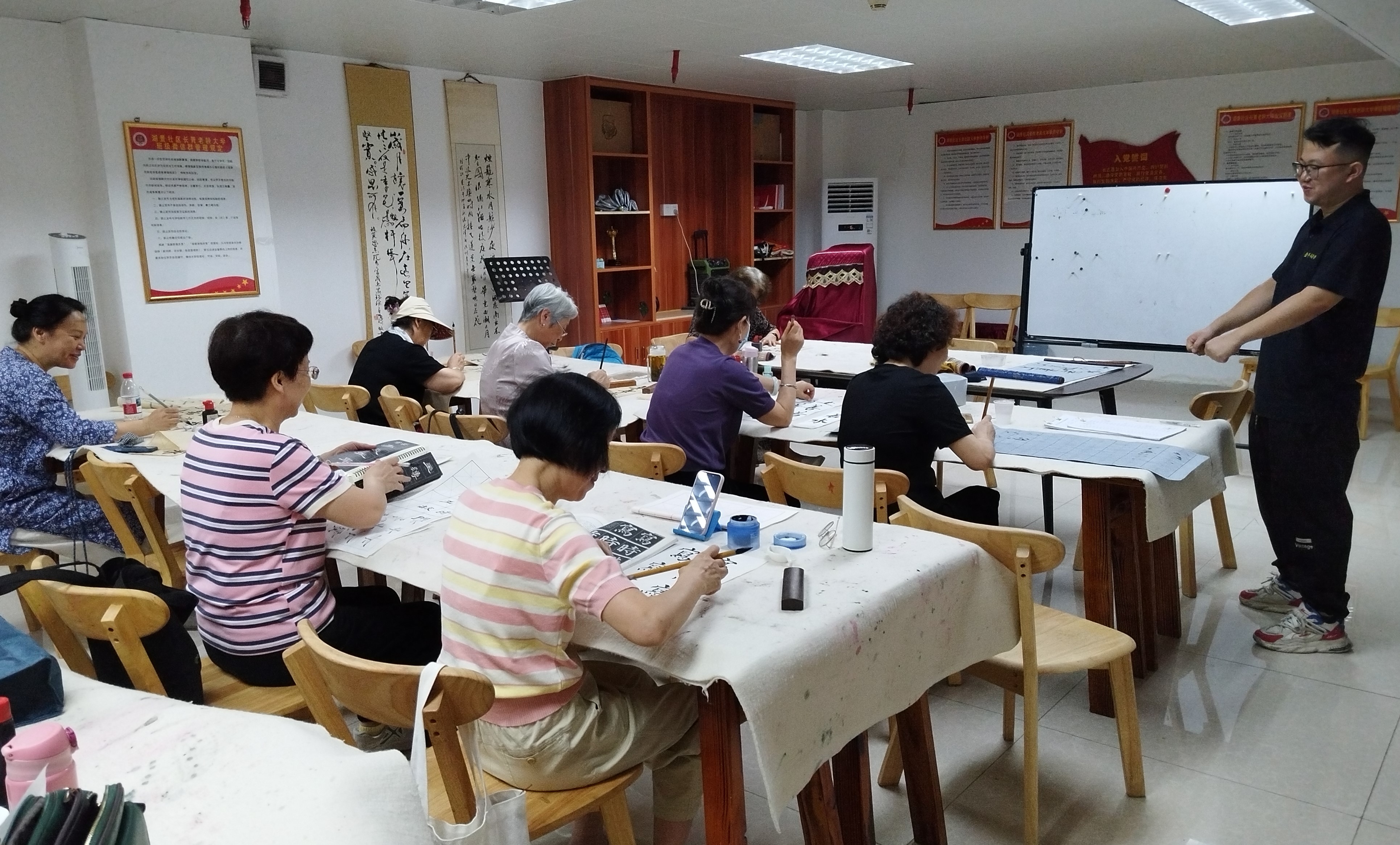 2025年7月5日,在湖景社区党委指导下,由社区党群服务中心、新时代文明实践站联合北斗社工及社区老年人协会共同举办的第五期长青老龄大学春季班圆满落幕。为期数月的课程中,共571人次通过书法、国画及“老少同乐”国画班三大特色课程,在传统文化浸润中实现自我提升,以艺术创作展现新时代老年群体的精神风采。
