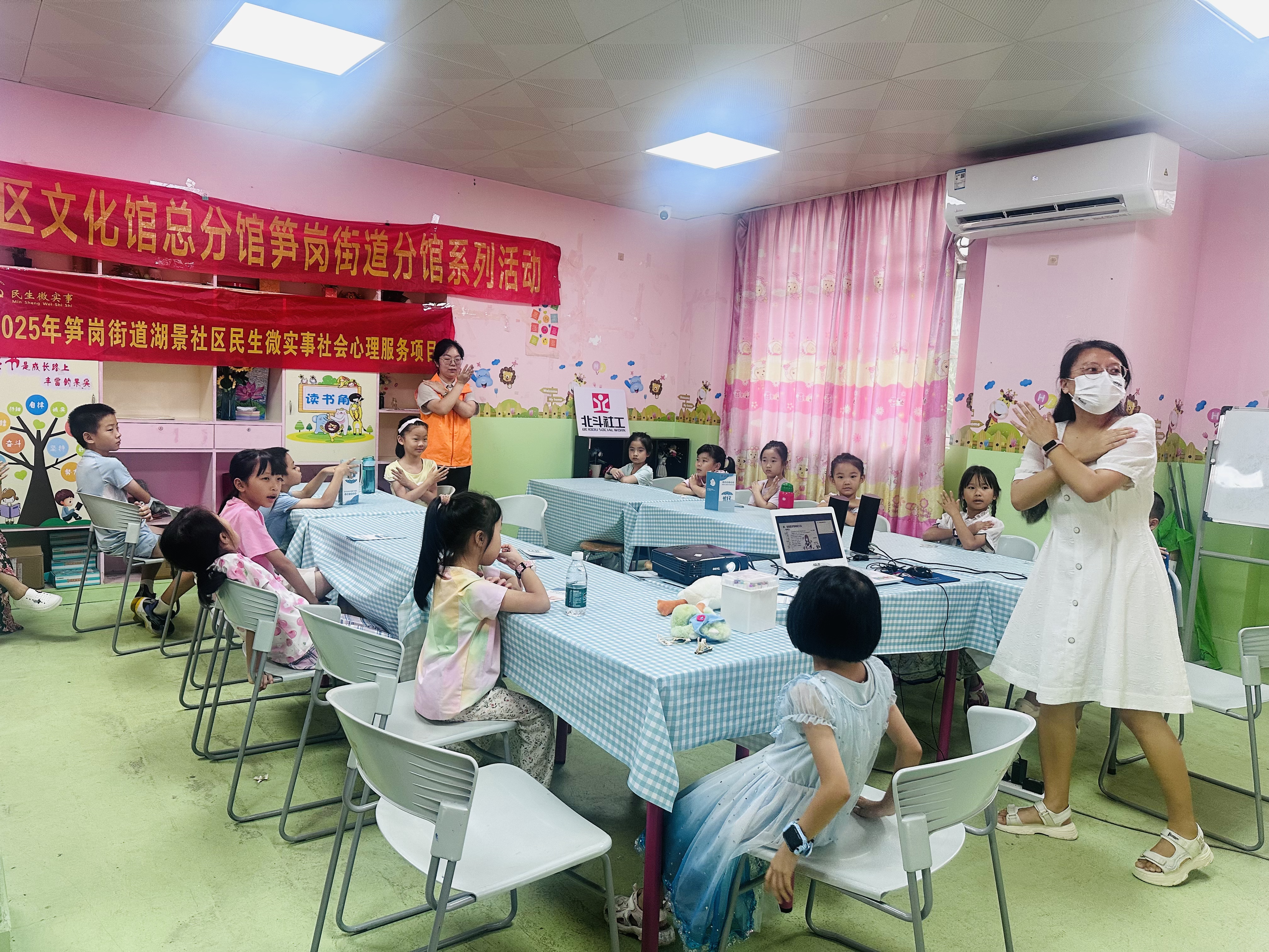 2025年7月18日下午,为关注儿童青少年的心理健康,培养他们正确的情绪认知与表达能力,在笋岗街道湖景社区党委的精心指导下,湖景社区党群服务中心、深圳市北斗社会工作服务中心携手笋岗街道未成年人保护工作站开展了一场“情绪调色盘”儿童青少年心理健康活动。吸引了 12位小朋友热情参与。