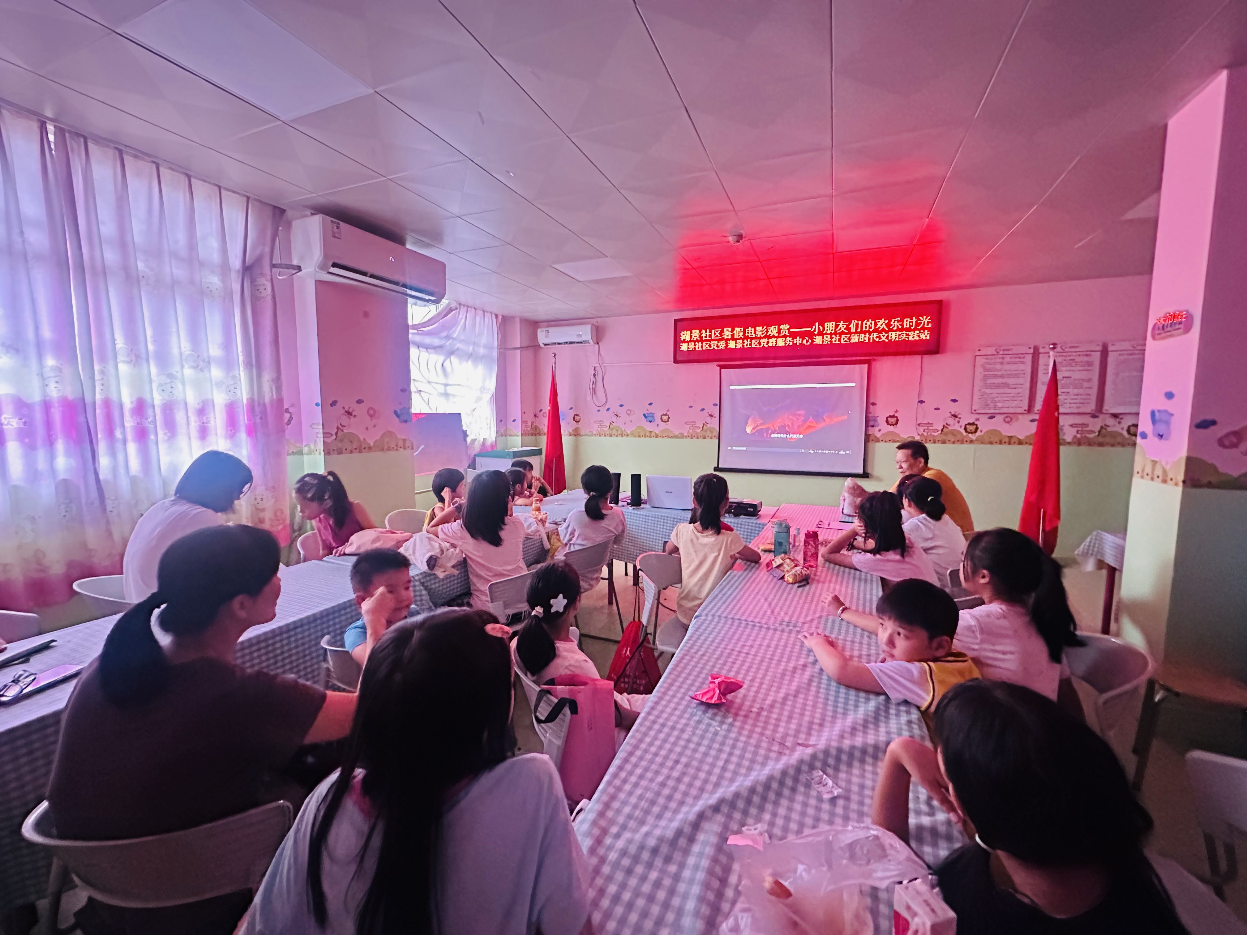 为丰富社区小朋友的课余文化生活,促进社区文化建设,2025 年 8 月 6 日下午,在湖景社区党委的指导下,湖景社区党群服务中心,湖景社区新时代文明实践站驻点机构深圳市北斗社会工作服务中心,开展了一场 “湖景社区暑假电影观赏 —— 小朋友们的欢乐时光活动”,共 20 名小朋友参与。