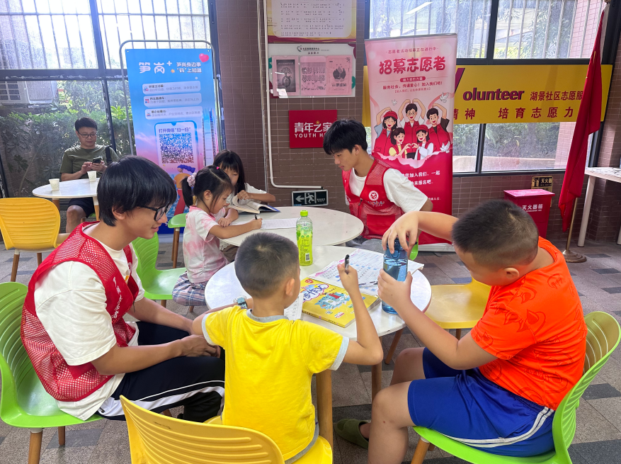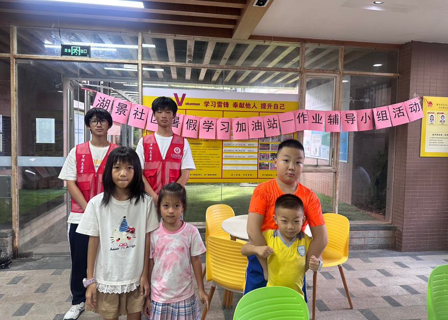 2025年8月11日至15日,炎炎夏日,暑假已至,在湖景社区党委的指导下,湖景社区党群服务中心,湖景社区新时代文明实践站驻点机构深圳市北斗社会工作服务中心开展了一场别开生面的暑假学习之旅“湖景社区暑假学习加油站——作业辅导小组活动”。此次活动共开展五节,旨在帮助孩子们高效完成作业,同时丰富他们的假期生活。共吸引了10余位孩子参与。