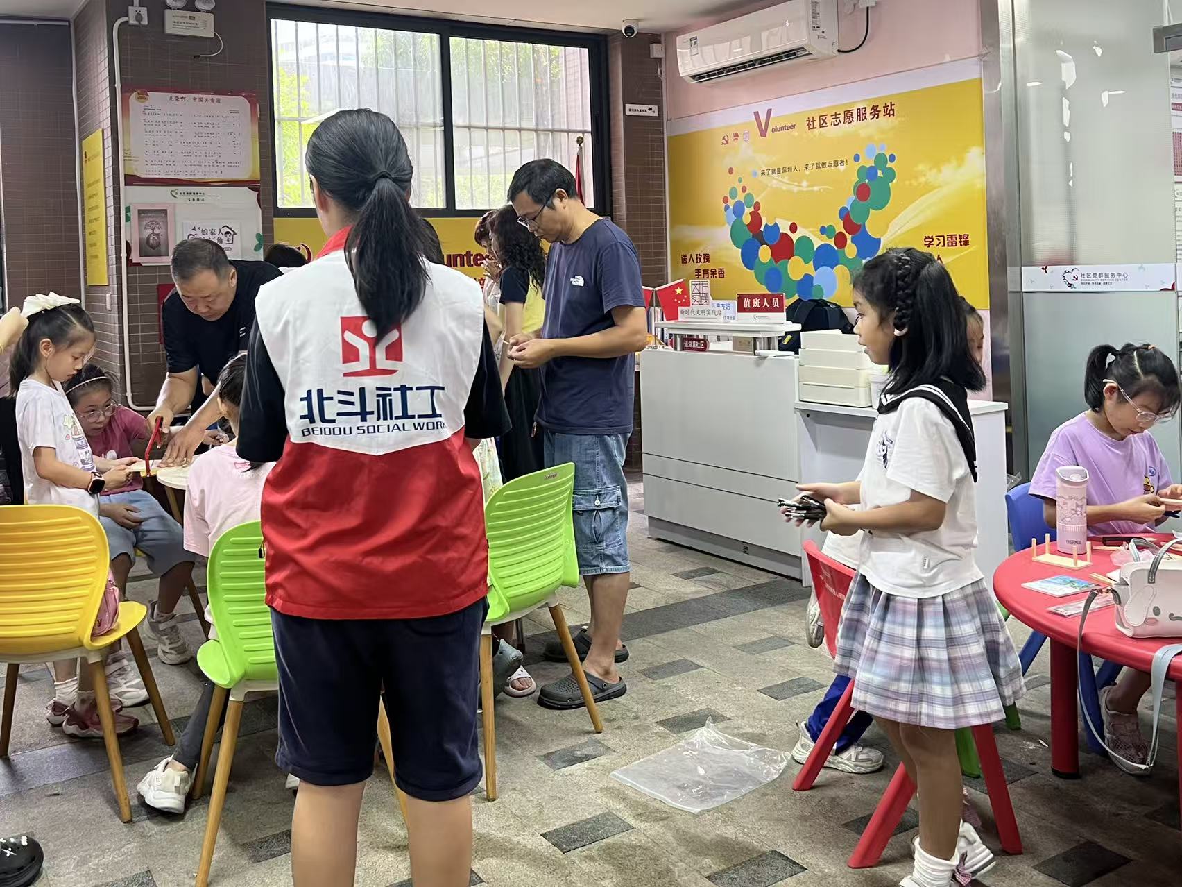 2025年10月12日下午,在湖景社区党委指导下,湖景社区党群服务中心、深圳市北斗社会工作服务中心联合洪湖小学家委会共同开展了湖景社区洪湖小学“玩转数学——我的迷你家具坊”实践活动,此次活动共有46组亲子家庭参与。本活动旨在结合《测量》单元,让学生通过迷你家具设计制作,巩固长度、面积等概念及单位换算、工具使用等技能,实现知识学以致用。同时锻炼动手操作、创新思维与问题解决能力,小组合作中提升协作交流素养。以生活化主题激发数学兴趣,感受数学与生活联系,树立实用数学观念,促进全面发展。