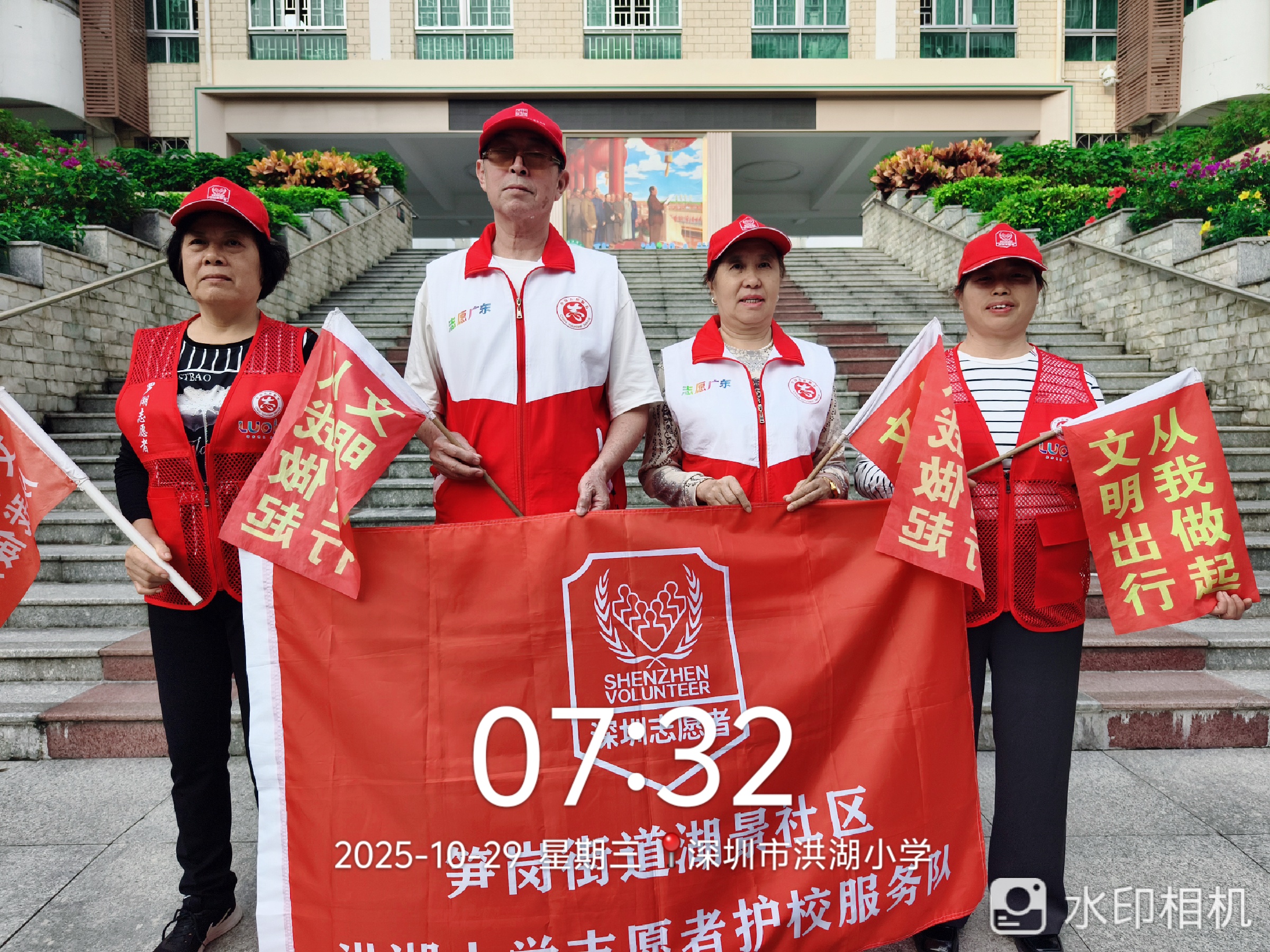 此次早间交通指挥志愿服务,在湖景社区党委的指导下,湖景社区党群服务中心联合洪湖小学开展了早间交通指挥志愿服务活动,活动聚焦学校周边交通拥堵难题,以 “护学安全” 为核心,用志愿力量为学生上下学筑起一道安全屏障。