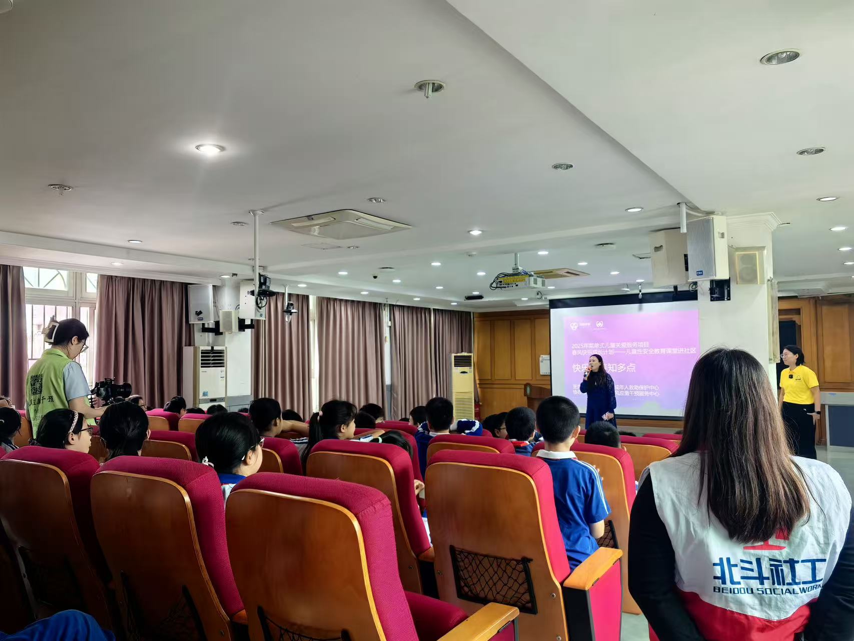 2025年10 月29日下午,在湖景社区党委的指导下,湖景社区党群服务中心、深圳市北斗社会工作服务中心联合深圳市未成年人救助保护中心、深圳市春风应激干预服务中心共同走进洪湖小学,为 90 名五年级学生带来了一场主题为“快乐青春知多少”的青少年青春期知识讲座。从基础生理知识普及到安全防护技能传授,课程设计层层递进,让孩子们在轻松氛围中读懂青春、学会守护自己。