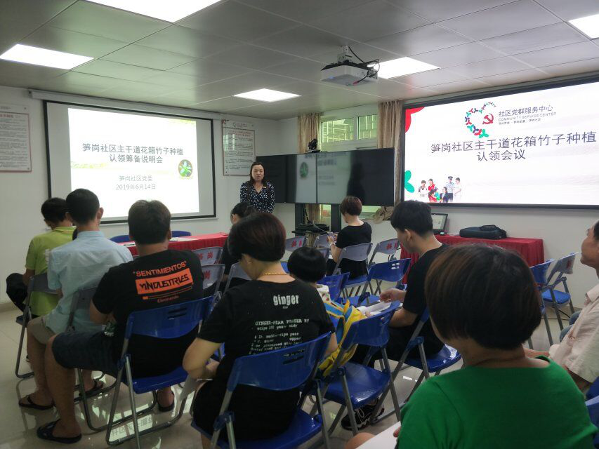 为此,笋岗社区党委与社工们,想办法,请专家指导。提出笋岗社区千人志愿计划,以主干道统一种竹子为圆点,邀请30家商铺,认领20个花箱,由这些商铺自己选择竹子,统一时间集中种植,为打造春笋家园,美好社区营造打下坚实基础。为笋岗社区志愿者队伍再添新生血液。