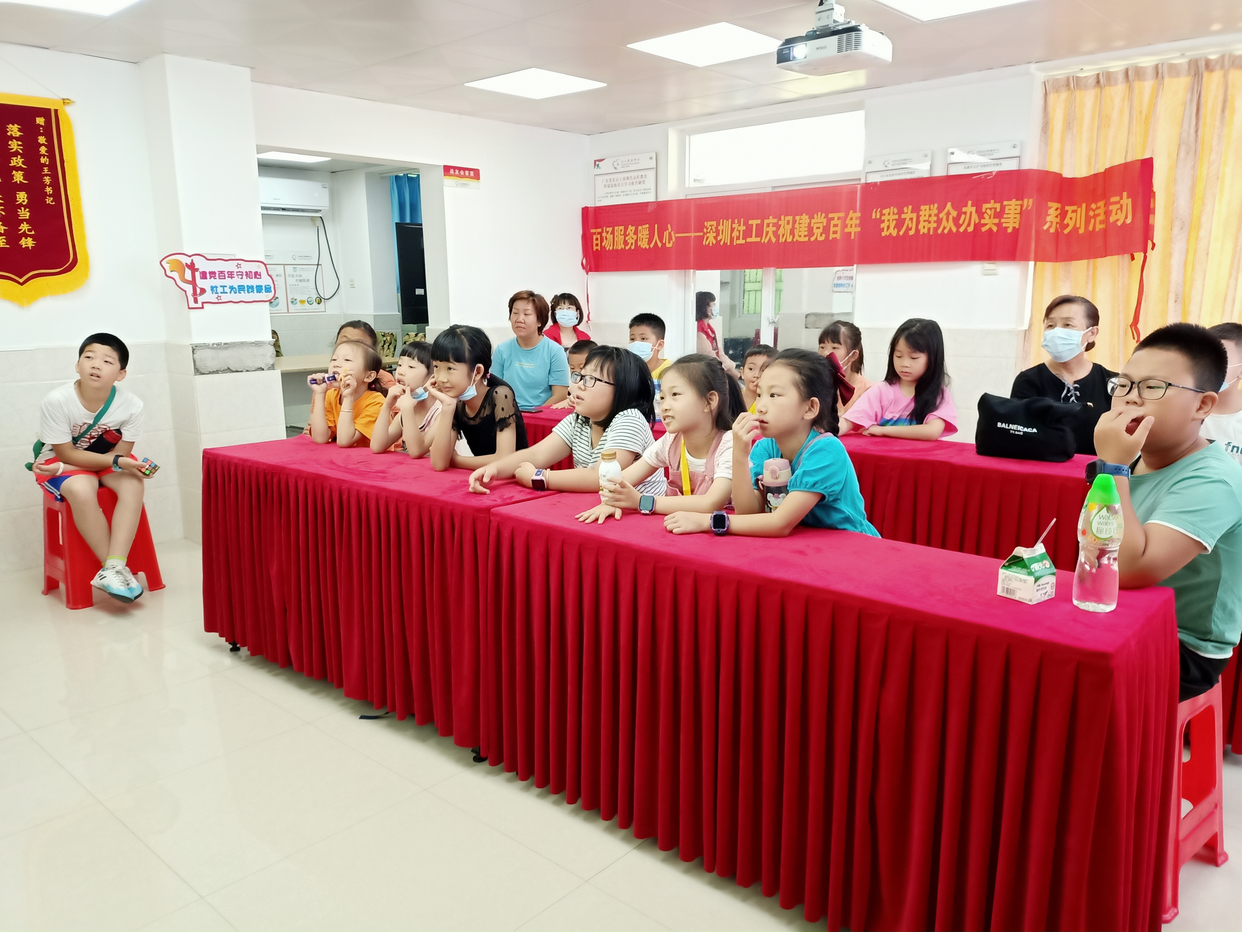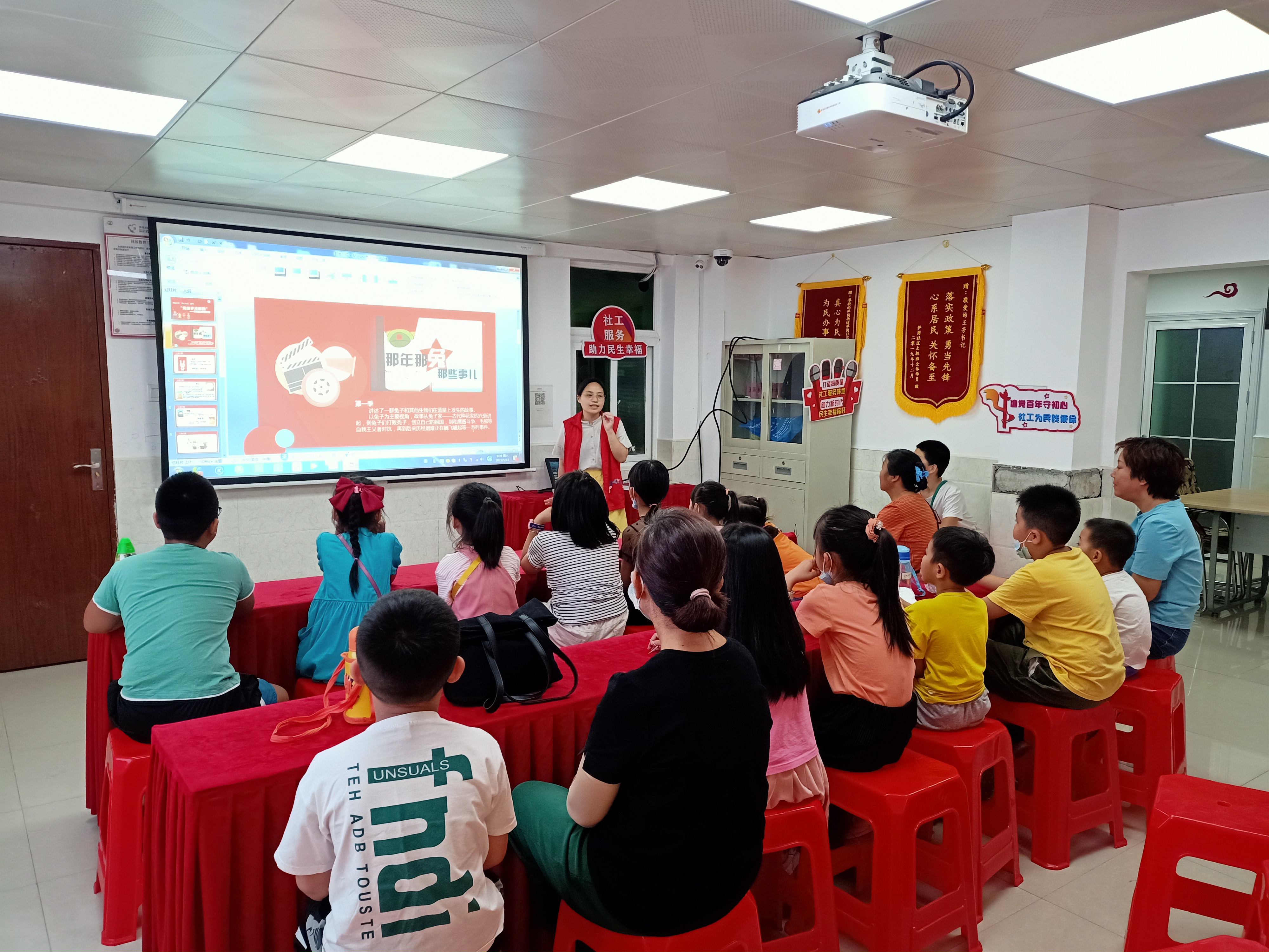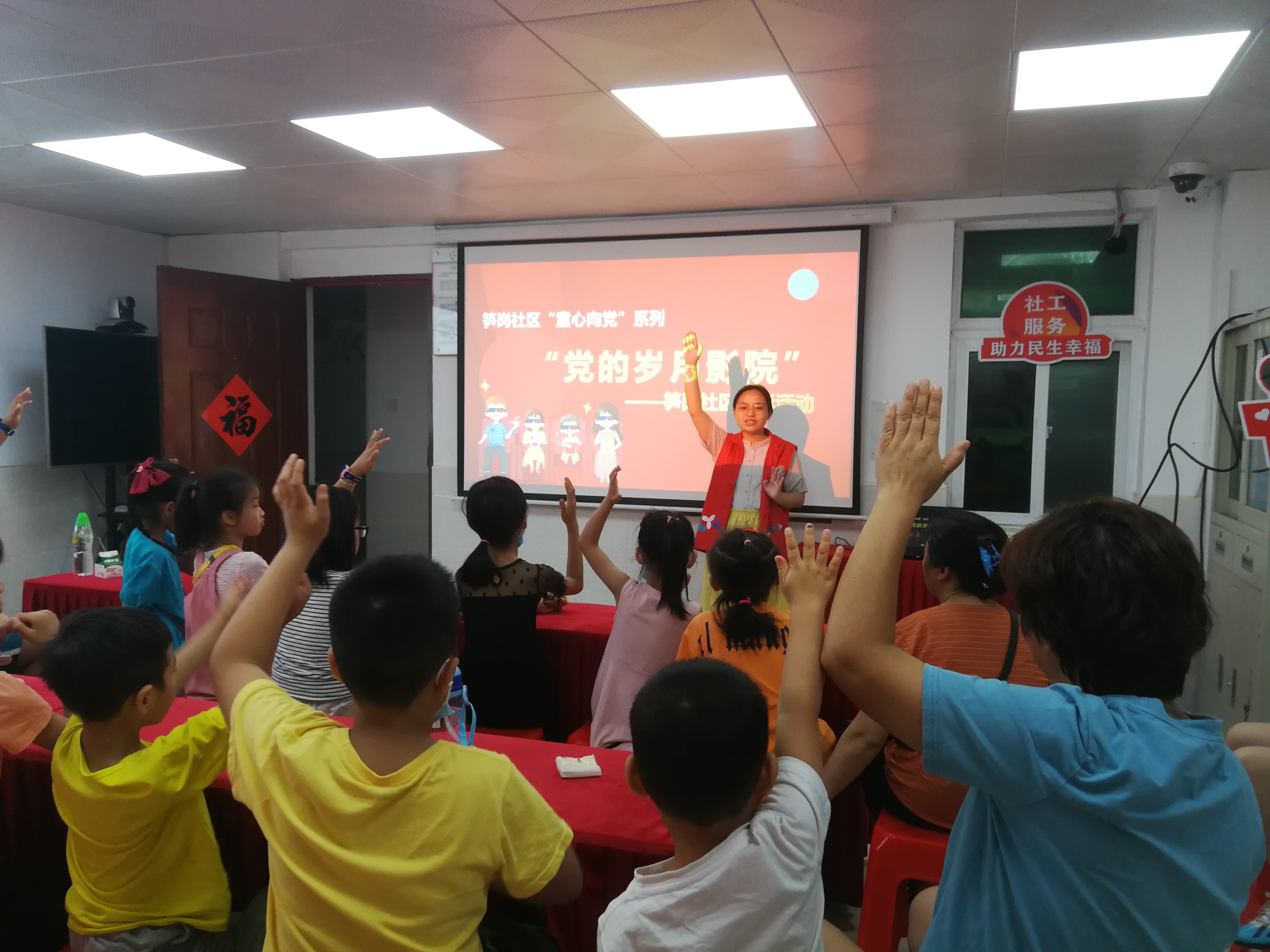 儿童青少年是祖国的未来、民族的希望,需时刻关心、关注他们的进步与成长。为扎实推进未成年人思想道德建设工作,帮助儿童青少年树立健康向上的世界观、人生观、价值观。在中国共产党成立100周年之际,2021年5月15日上午,笋岗社区以“学党史 强教育 励童心”为主题开展“党的岁月影院”观影活动,组织社区儿童观看爱国教育动漫《那年那兔那些事儿》。