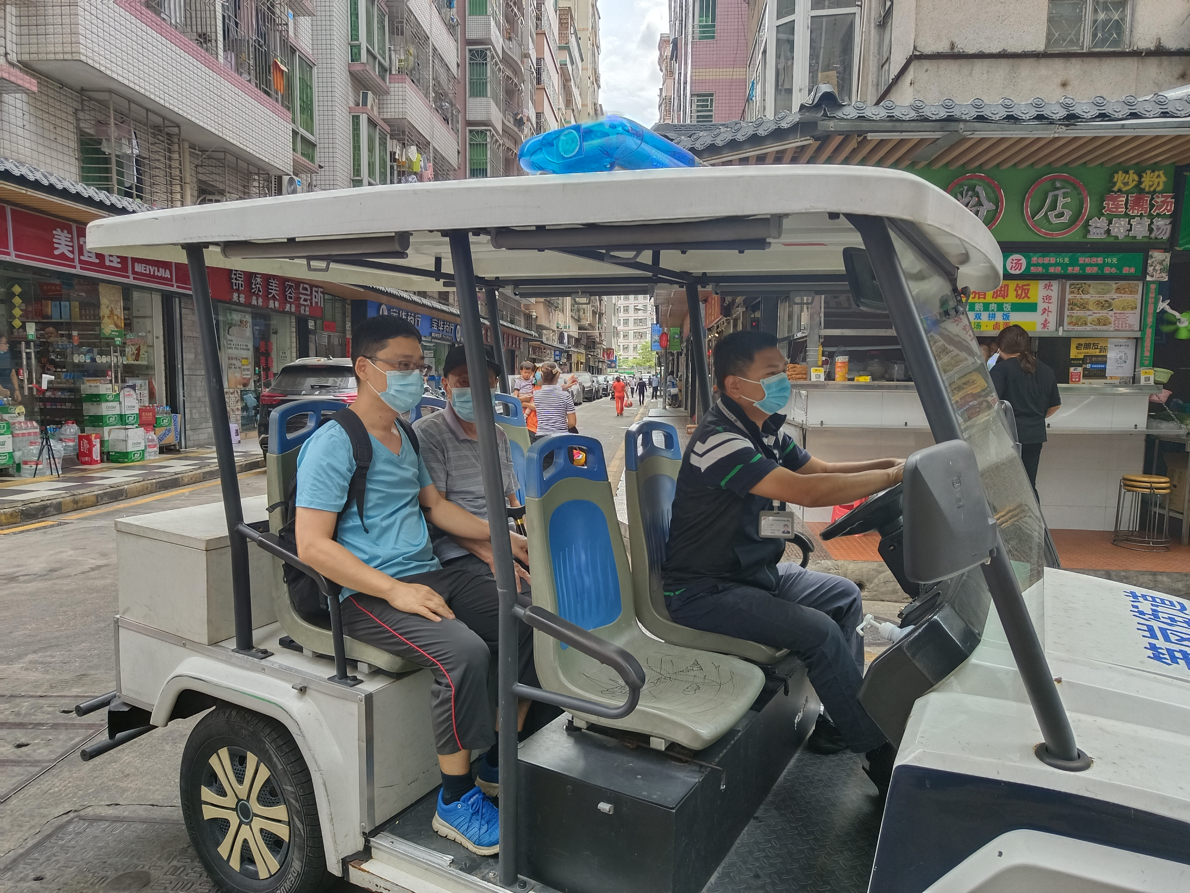2022年4月16日笋岗社区工作人员接送长者到社康接种疫苗。