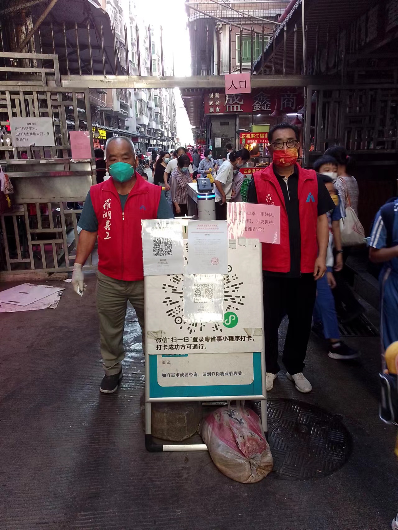 2022年11月17日笋岗社区义工在菜市场卡口处执勤。