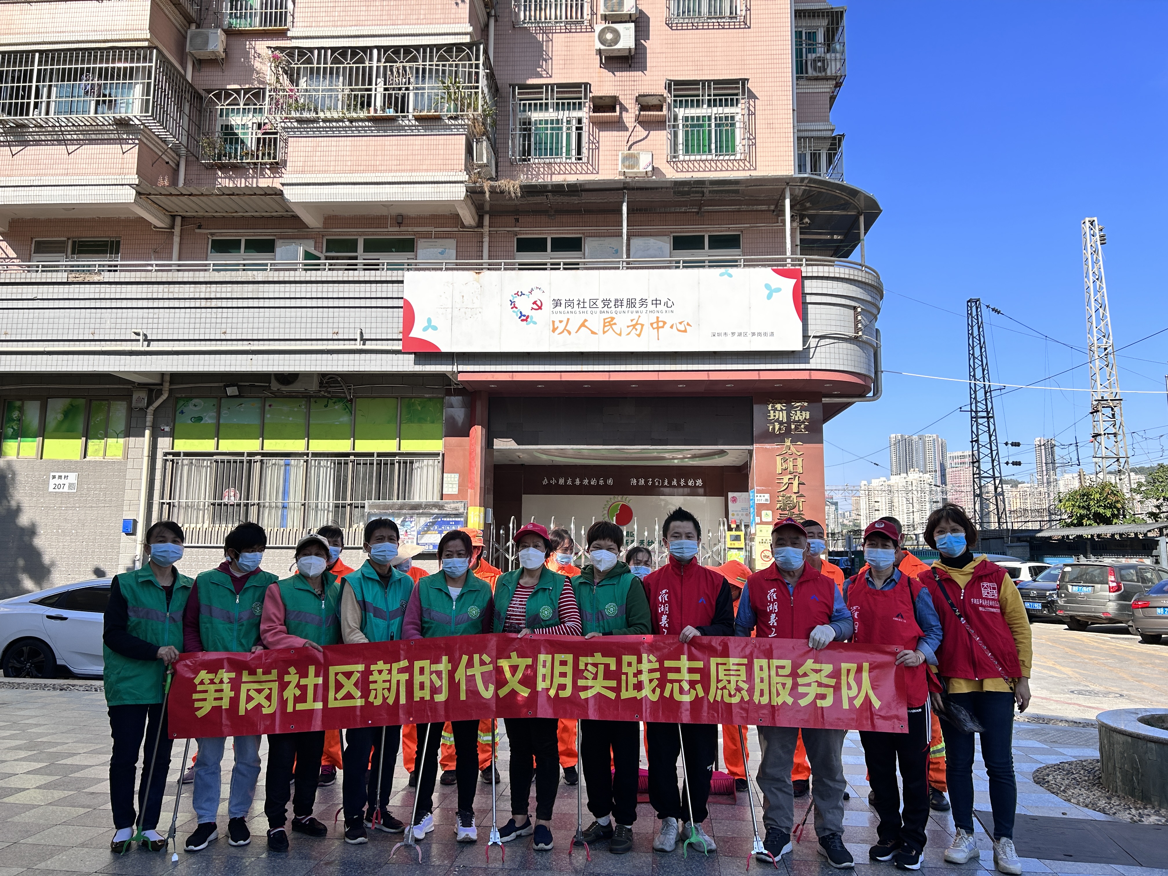 2023年1月6日下午15:00点为进一步提升社区的环境卫生,营造良好的社区环境,笋岗社区开展新时代文明实践志愿服务队活动。