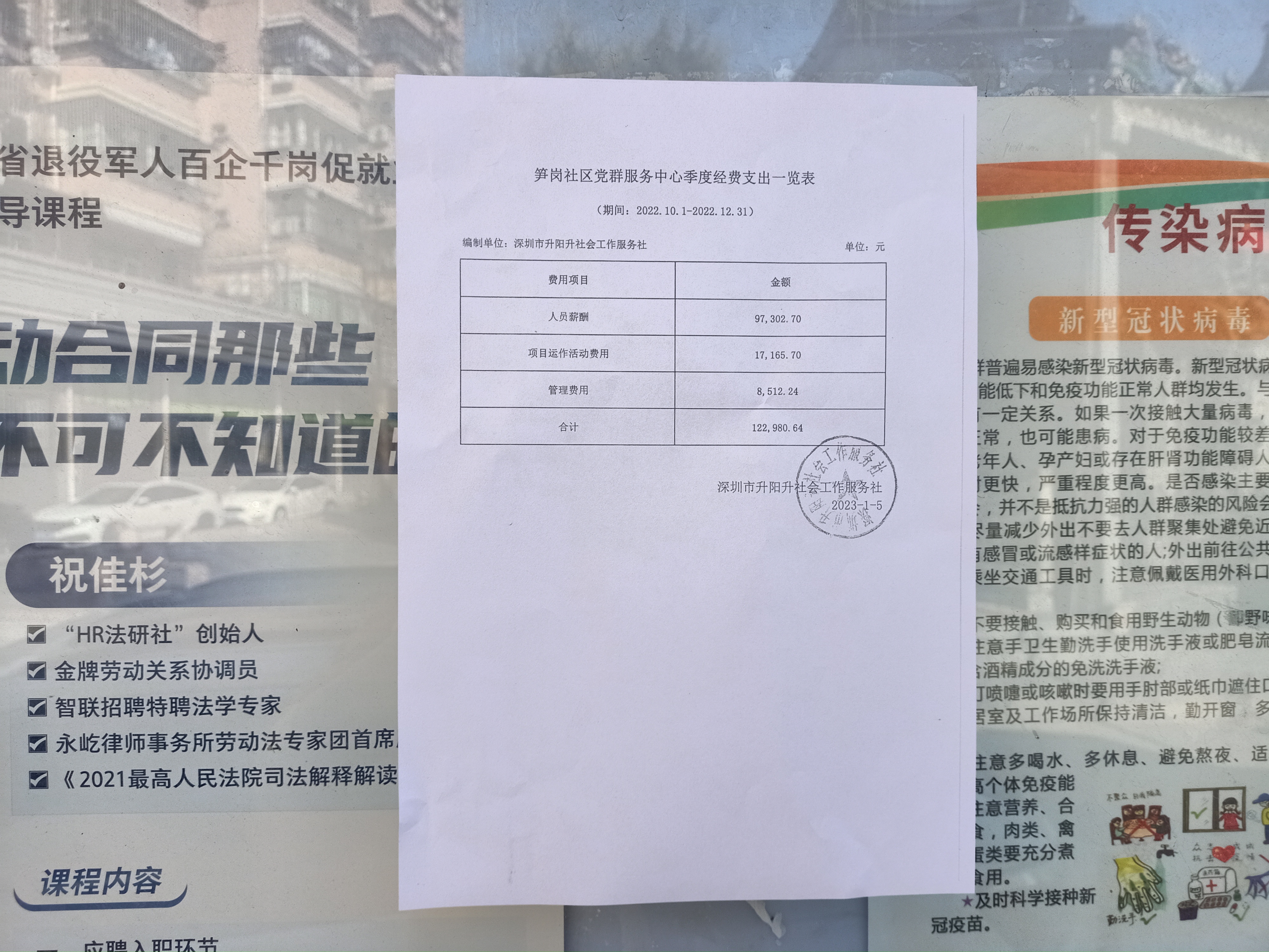 2023年1月6日笋岗社区党群服务中心公示2022年第四季度财务支出。