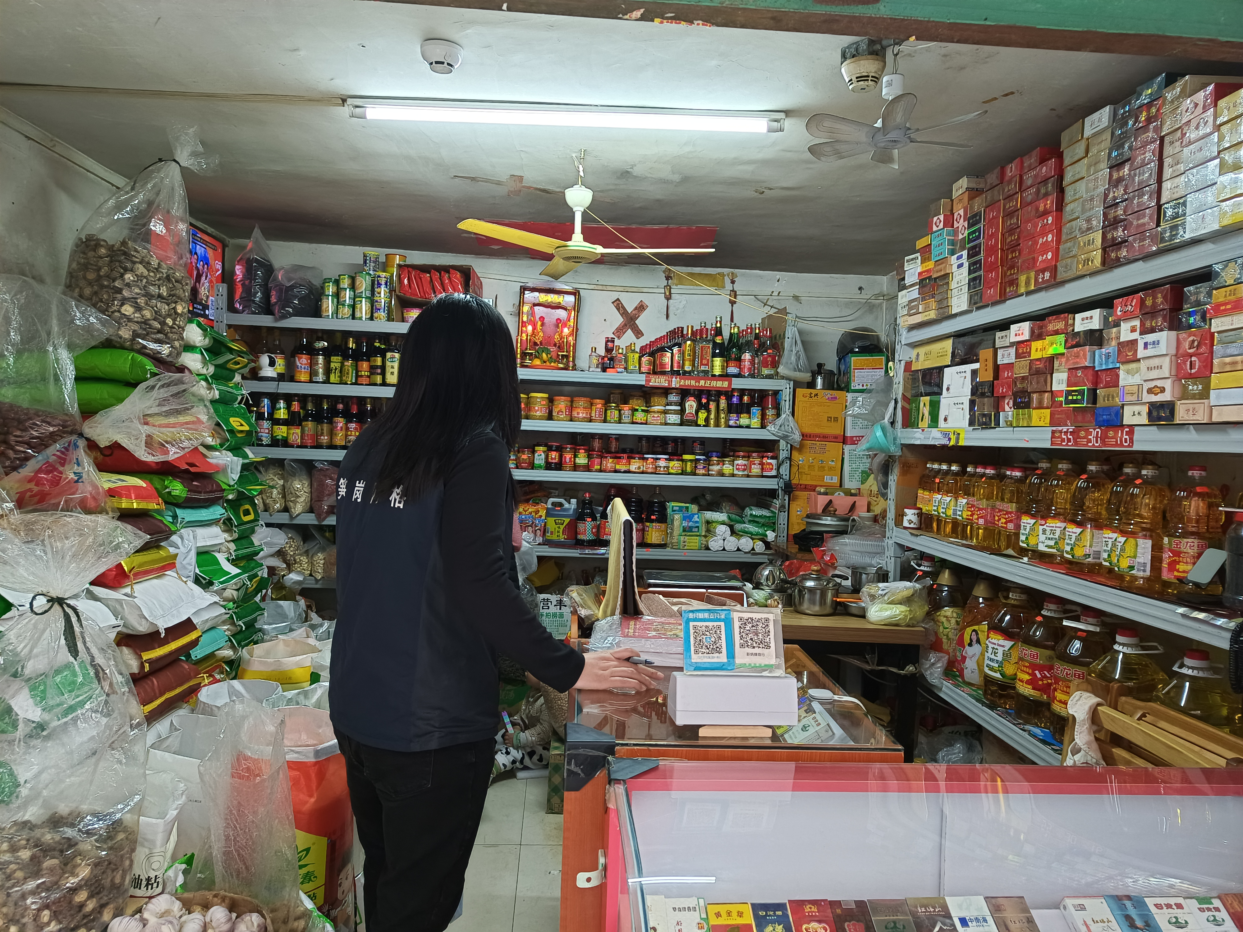 2023年1月4日笋岗社区网格员在门店开展安全检查。