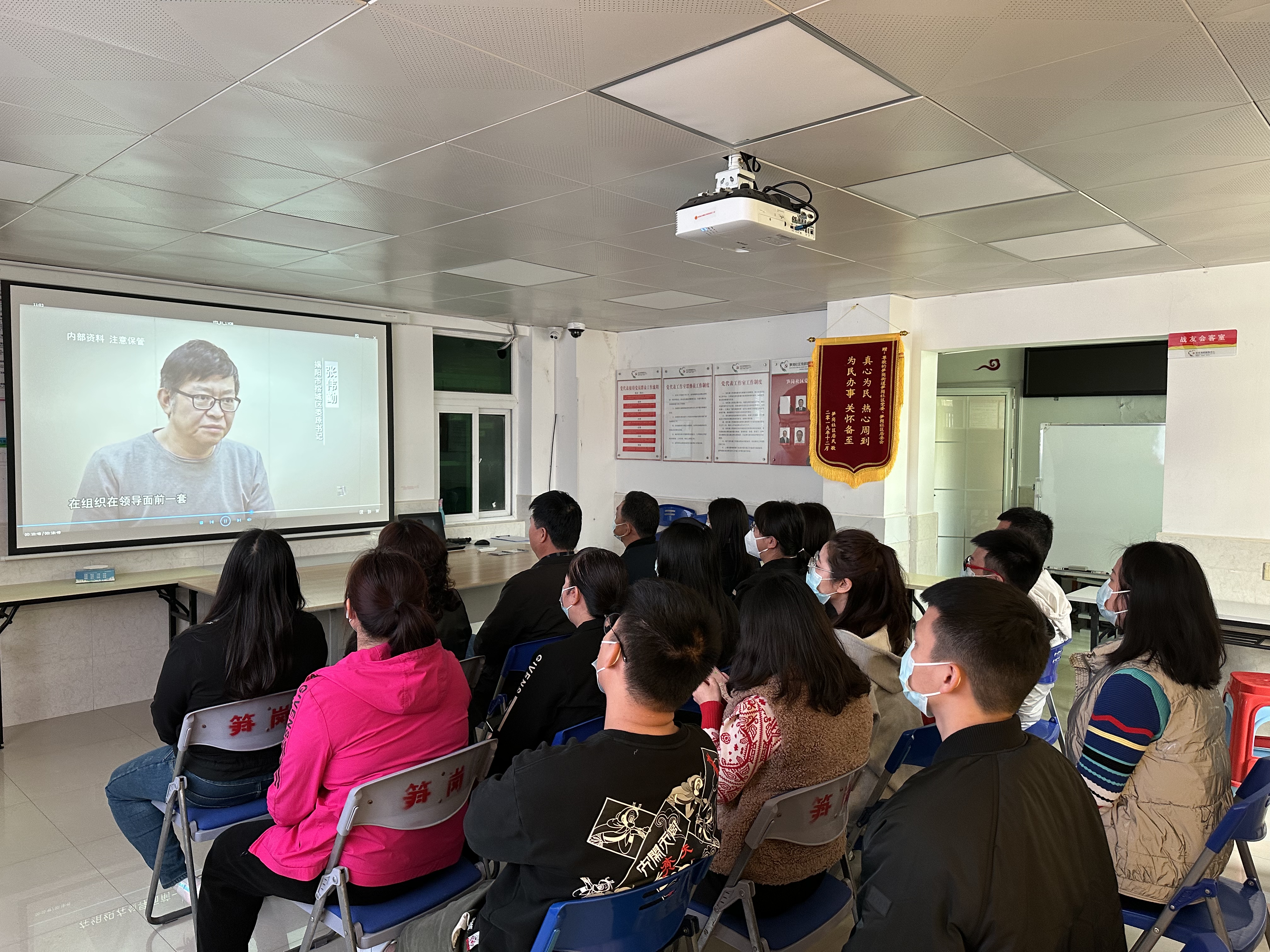 2023年2月22日上午笋岗社区党群服务中心组织工作人员观看警示片。