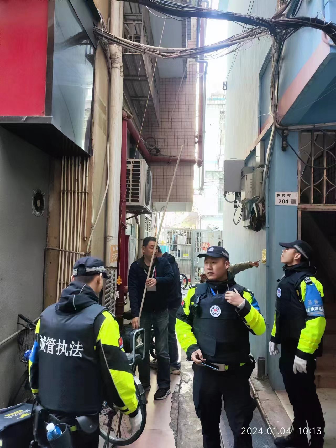 2024年01月04日上午10点笋岗社区开展市容环境综合整治执法行动。