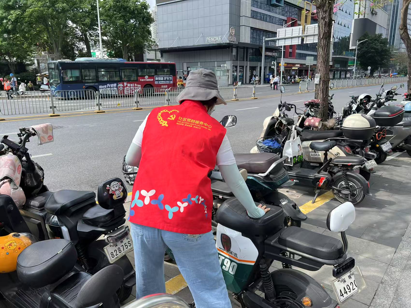2025年4月22日,笋岗社区开展电动车维持秩序停放。