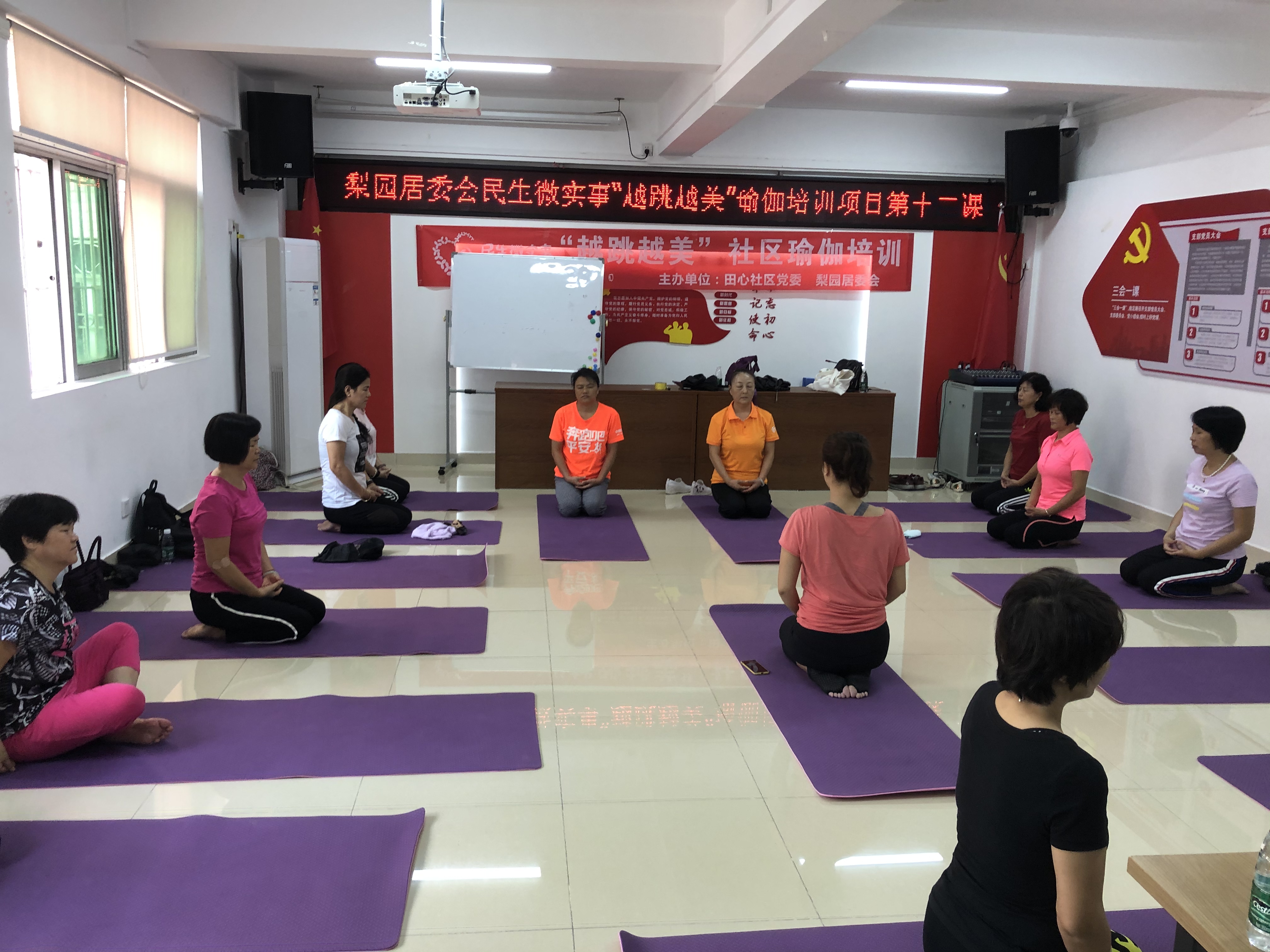 月29日上午9:30-11:00,梨园居委会在田心社区党群服务中心多功能室开展了民生微实事活动:“越跳越美”社区瑜伽培训的第十二课。