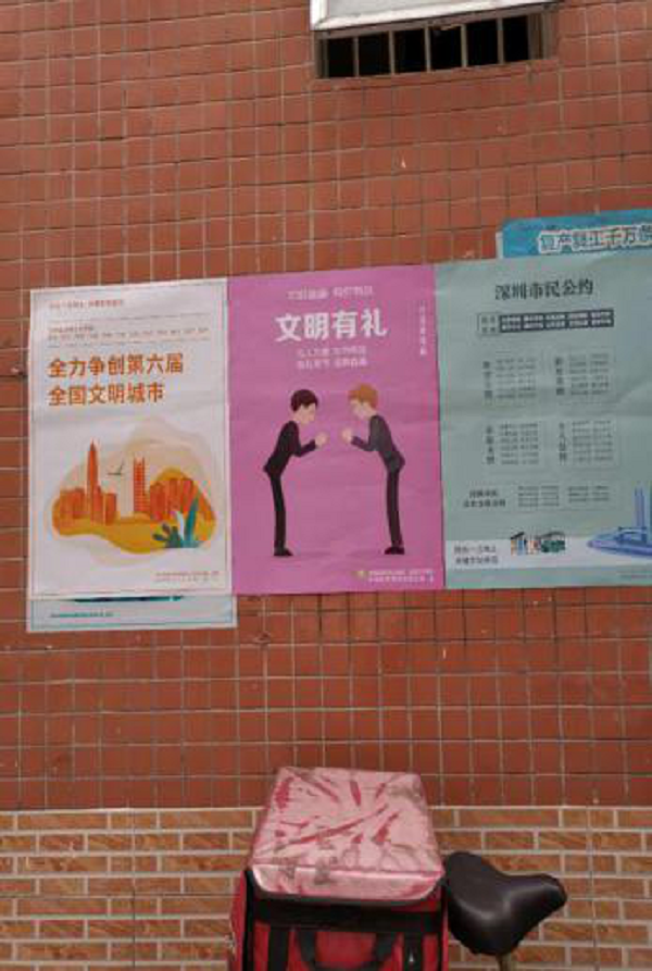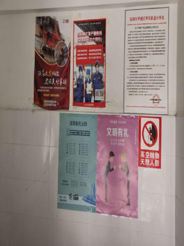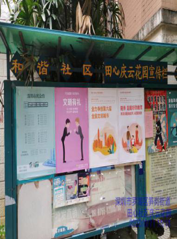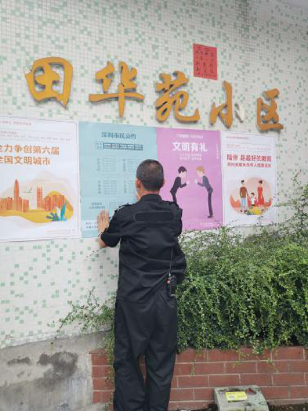 出入口,楼道口,宣传栏粘贴创建文明城市宣传海报。