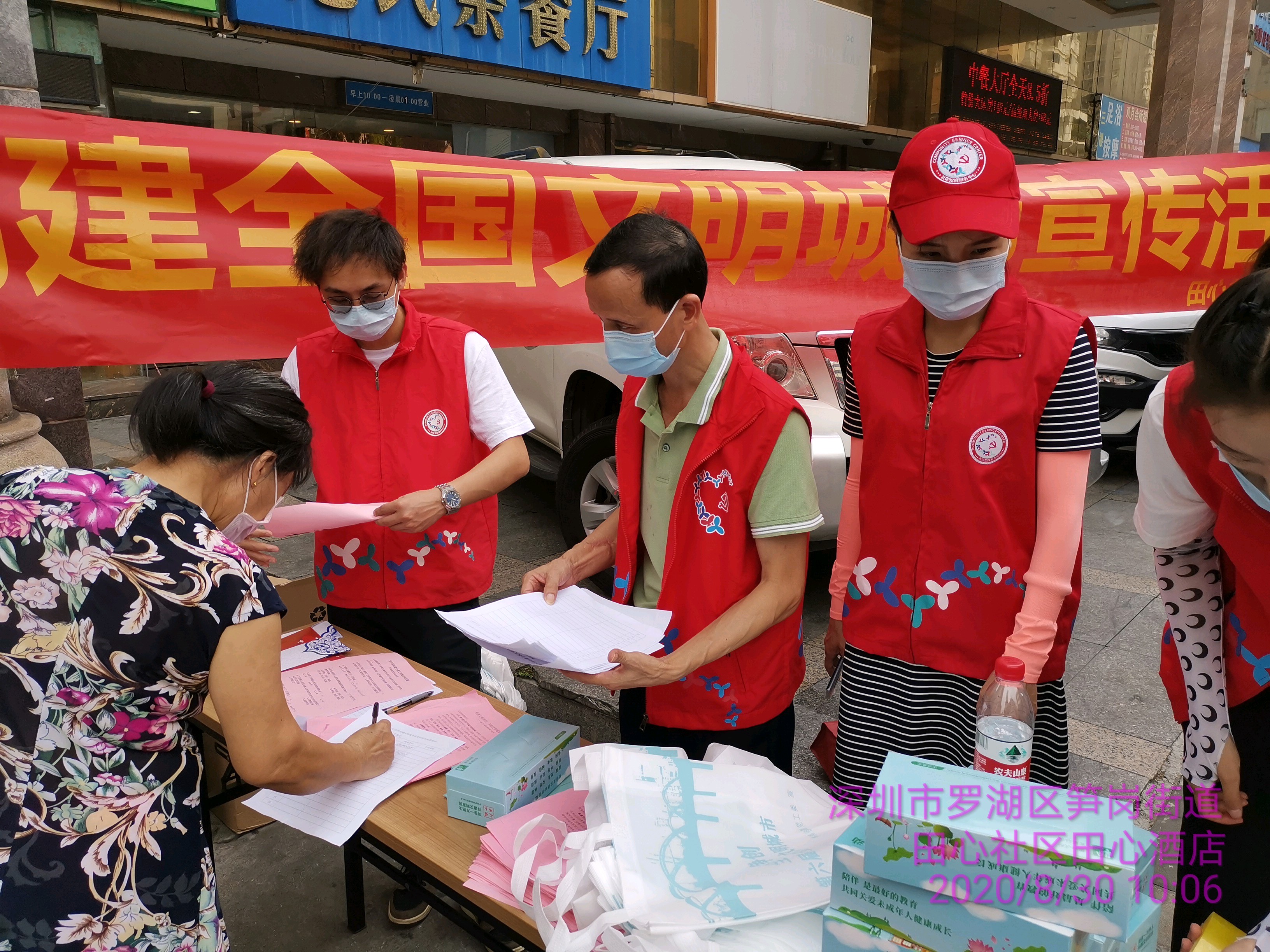 (罗湖家园网讯)日前,田心社区开展的创建文明城市宣传活动吸引了众多居民的热情参与,为了继续在田心社区内营造浓厚的文明城市创建氛围,2020年8月30日上午田心社区于田心村、梅园新村、深城公寓等服务点设立宣传摊位居民,通过发放文明手册、争做文明市民 共创文明城市的一封信等方式向过往居民们宣传文明城市创建工作,设置问答区域,吸引社区居民以有奖问答的形式共同学习创建文明知识,引导居民们在日常生活中践行文明行为,以此号召全民参与创建文明城市工作,不断巩固文明城市创建成果!