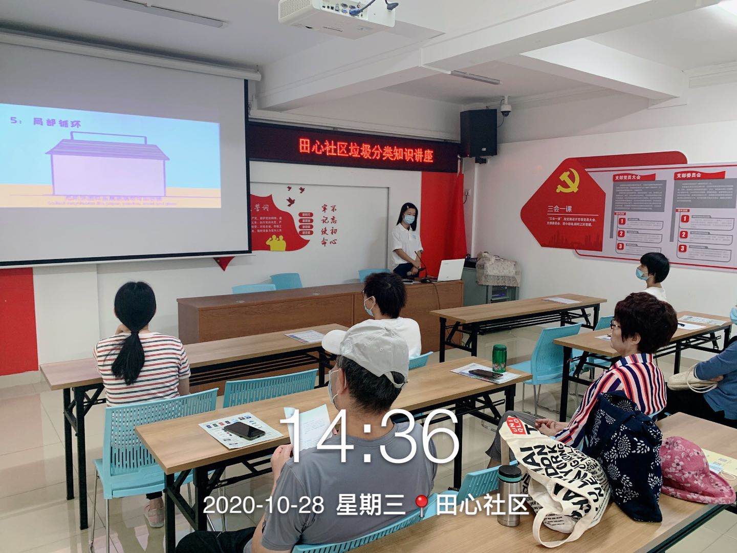 2020年10月28日田心社区开展垃圾分类知识讲座活动,普及垃圾分类知识,提高社区居民垃圾分类意识。
