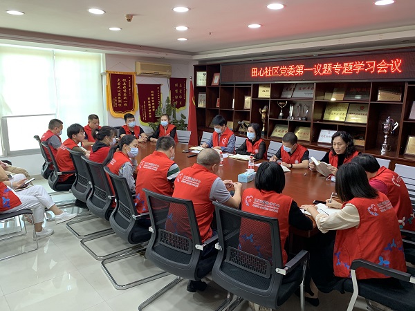 2020年11月11日,田心社区党委组织党员学习,由社区党委委员李文霞同志领学了