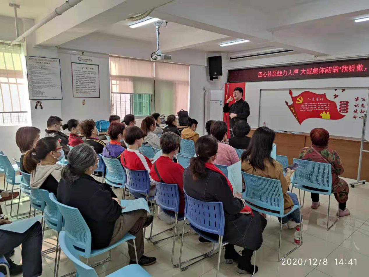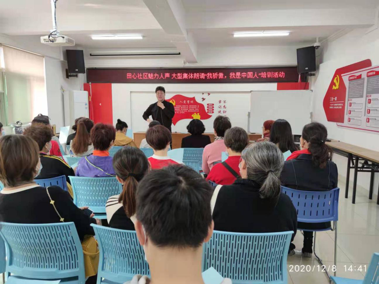 (罗湖家园网讯)为丰富辖区居民的文化艺术生活,给广大居民搭建交流沟通、展示才艺的文化平台,2020年12月8日起,田心社区开展为期10天的魅力人声 大型集体朗诵“我骄傲,我是中国人”培训活动,近40位热爱朗诵的社区企业代表、居民代表等踊跃参与了本次活动。