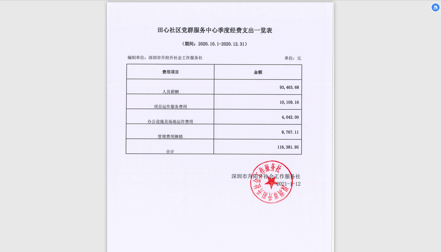 田心社区党群服务中心季度经费支出公示(期间:2020.10.1-2020.12.31)