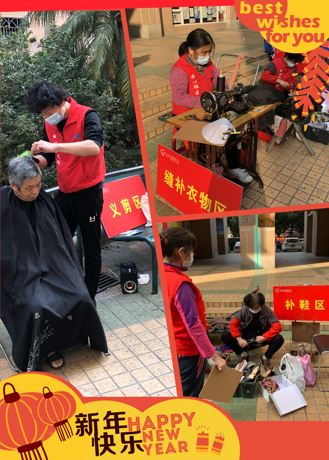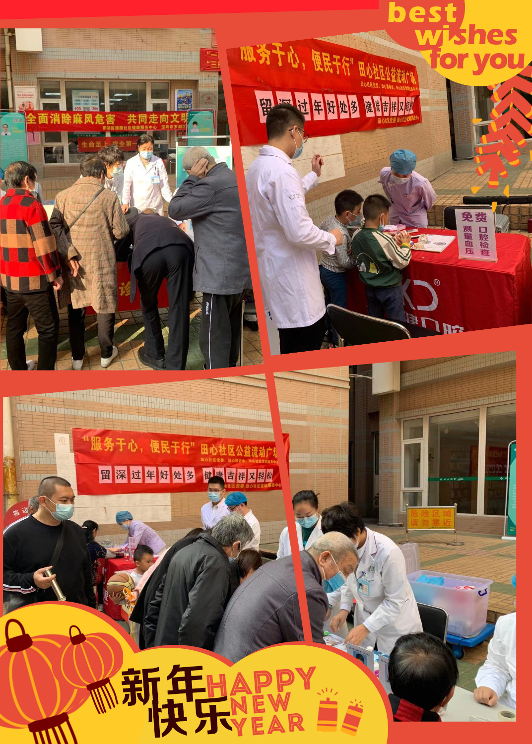 (罗湖家园网讯)为了进一步提升社区服务品质,贴近居民实际需求,营造和谐、温馨的“留深”过年氛围,在田心社区党委的带领下,田心社区居委会、庆云花园管理处的支持下,笋岗街道田心社区党群服务中心于2021年1月28号下午开展“服务于心,便民于行”田心社区公益流动广场活动,倡议社区居民留深过年,为社区居民提供义剪、义补、综合义诊、口腔义诊、跳蚤市场、剪窗花,迎新春等公益便民服务,从实际出发,整合各类资源,解决社区居民生活所需。