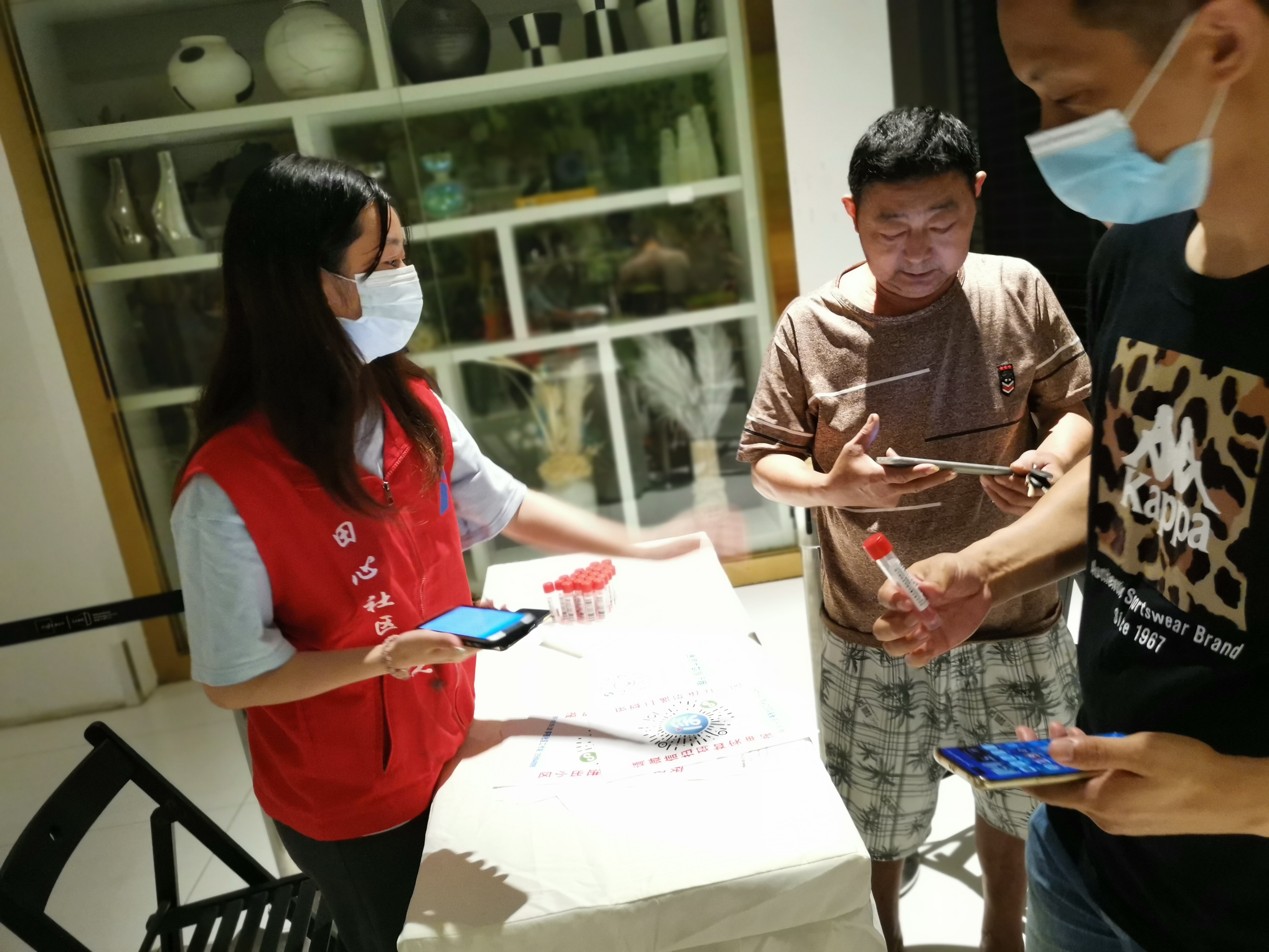 2021年7月24日,田心社区党群服务中心社工带领义工前往艺展中心三期、协助笋岗街道开展重点行业从业人员核酸检测工作。