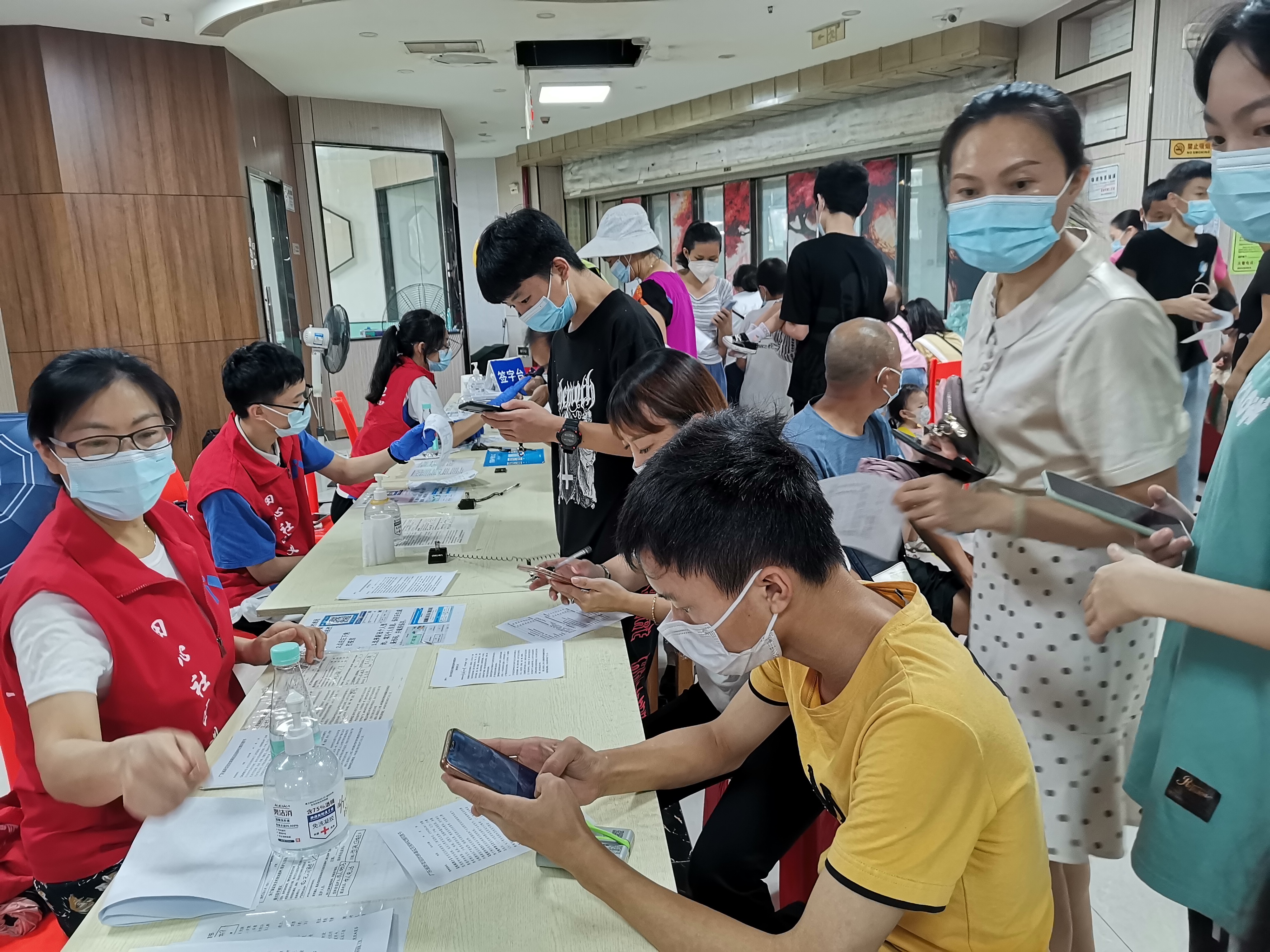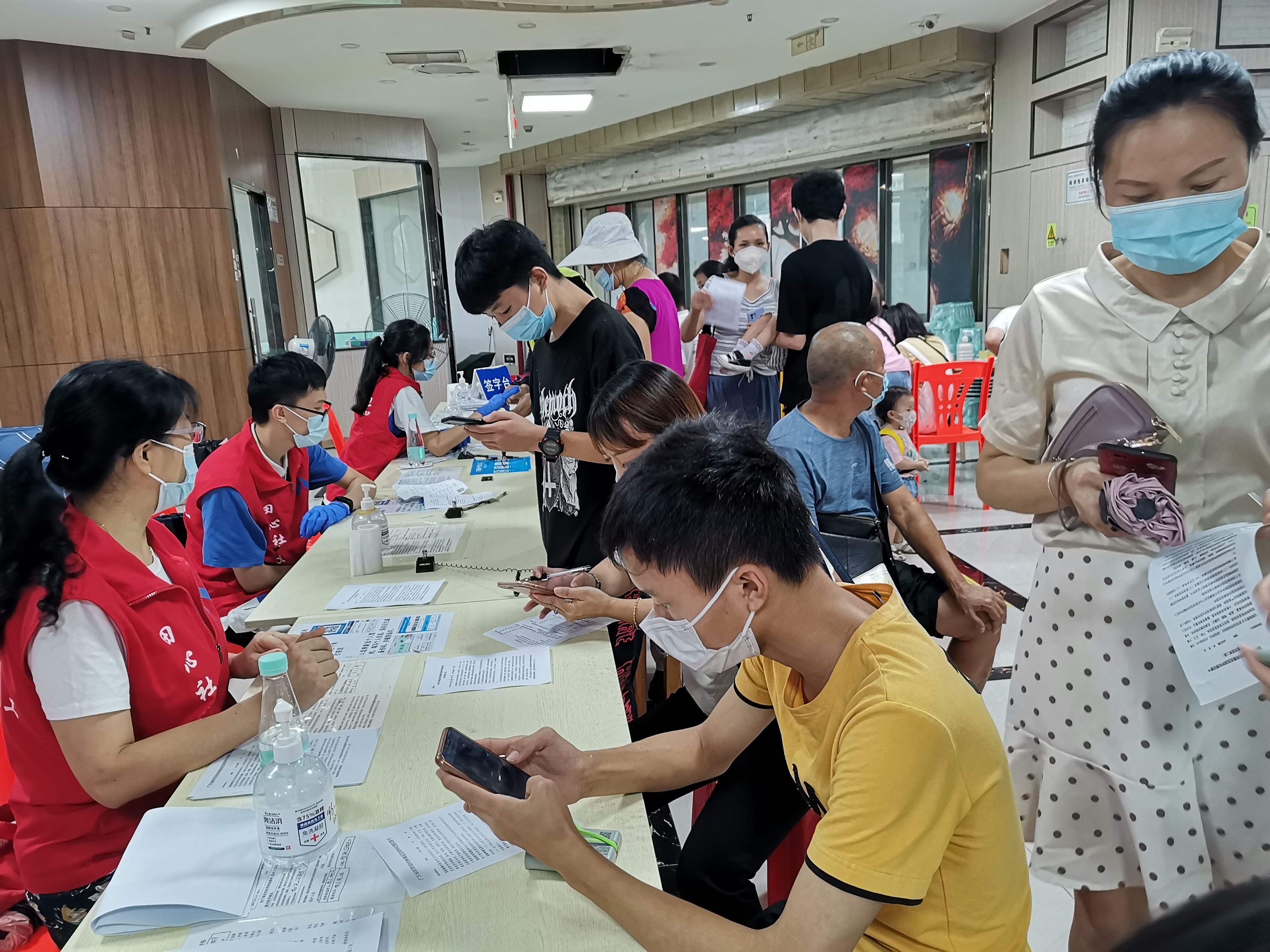 (罗湖家园网讯)2021年8月13日,在田心社区党委的引领下,党群服务中心社工带领志愿者们前往笋岗街道社康中心协助新冠疫苗接种工作。接种现场,社区志愿者们身穿红色马甲,分布在不同的点位上,有的负责维持现场秩序,有的负责引导居民排队登记,由于很多长者因为视力不佳、不擅长使用智能手机等,志愿者们则耐心协助长者群体填写表格、扫码建档,并提醒长者携带体检报告以便医生评估接种,使现场接种工作更加高效快捷。