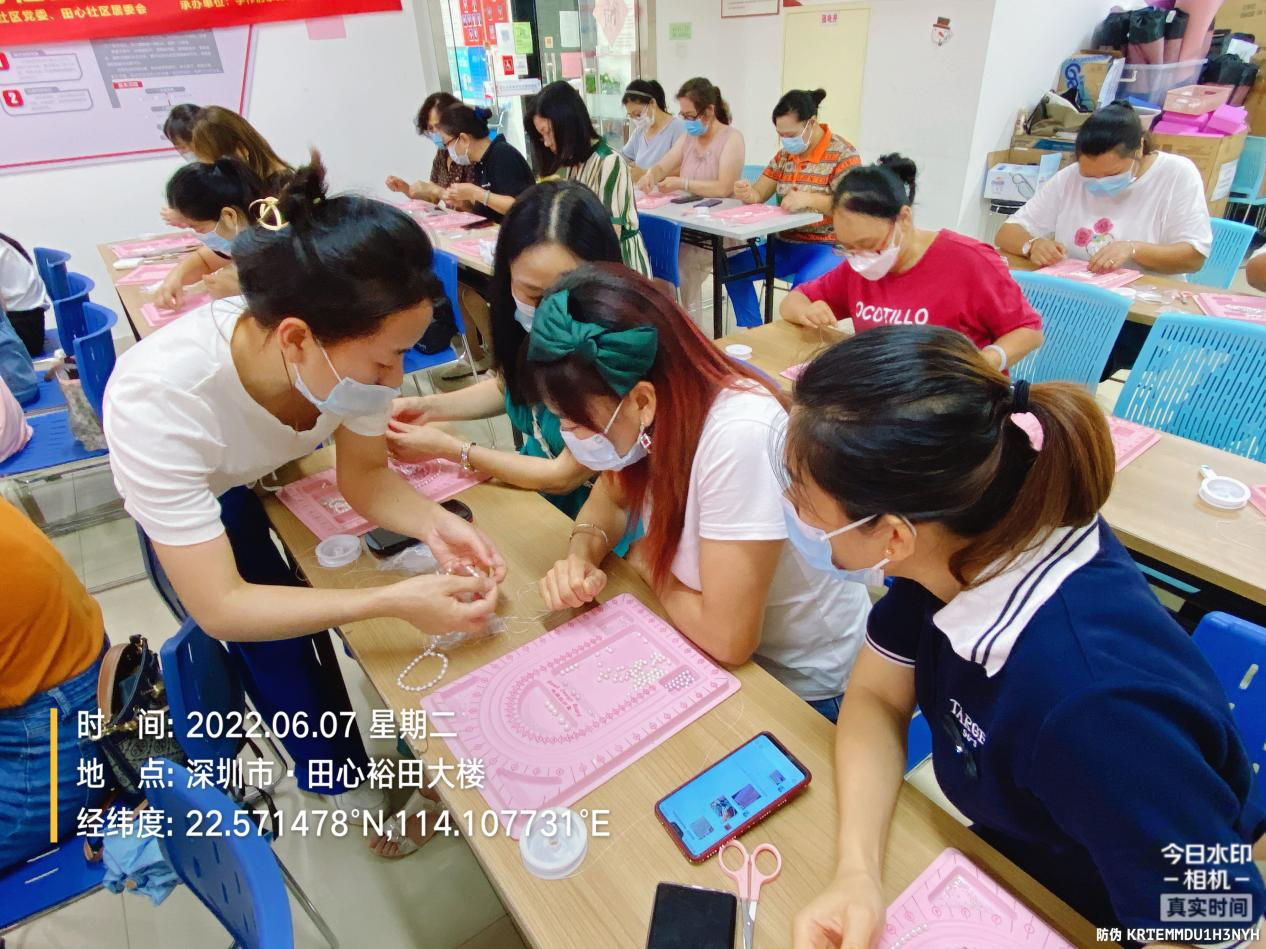 罗湖家园网讯:2022年6月7日下午,由田心社区党委、田心社区居委会举办的民生微实事项目:《串起美好生活——社区女性居家轻创业计划》在田心社区新时代文明实践站开展了系列活动第二场——珍珠时尚项链活动。