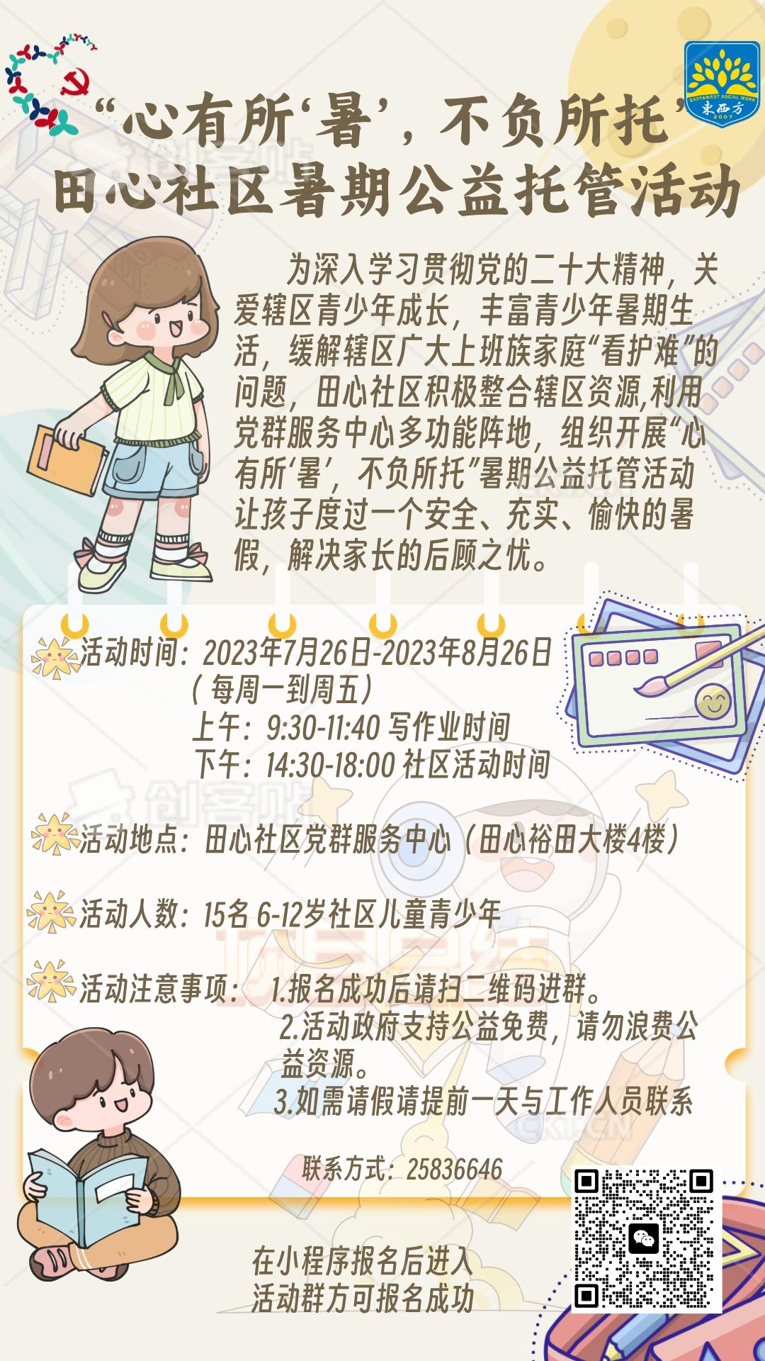 “心有所‘暑’,不负所托”——田心社区暑期公益托管活动招募啦!
