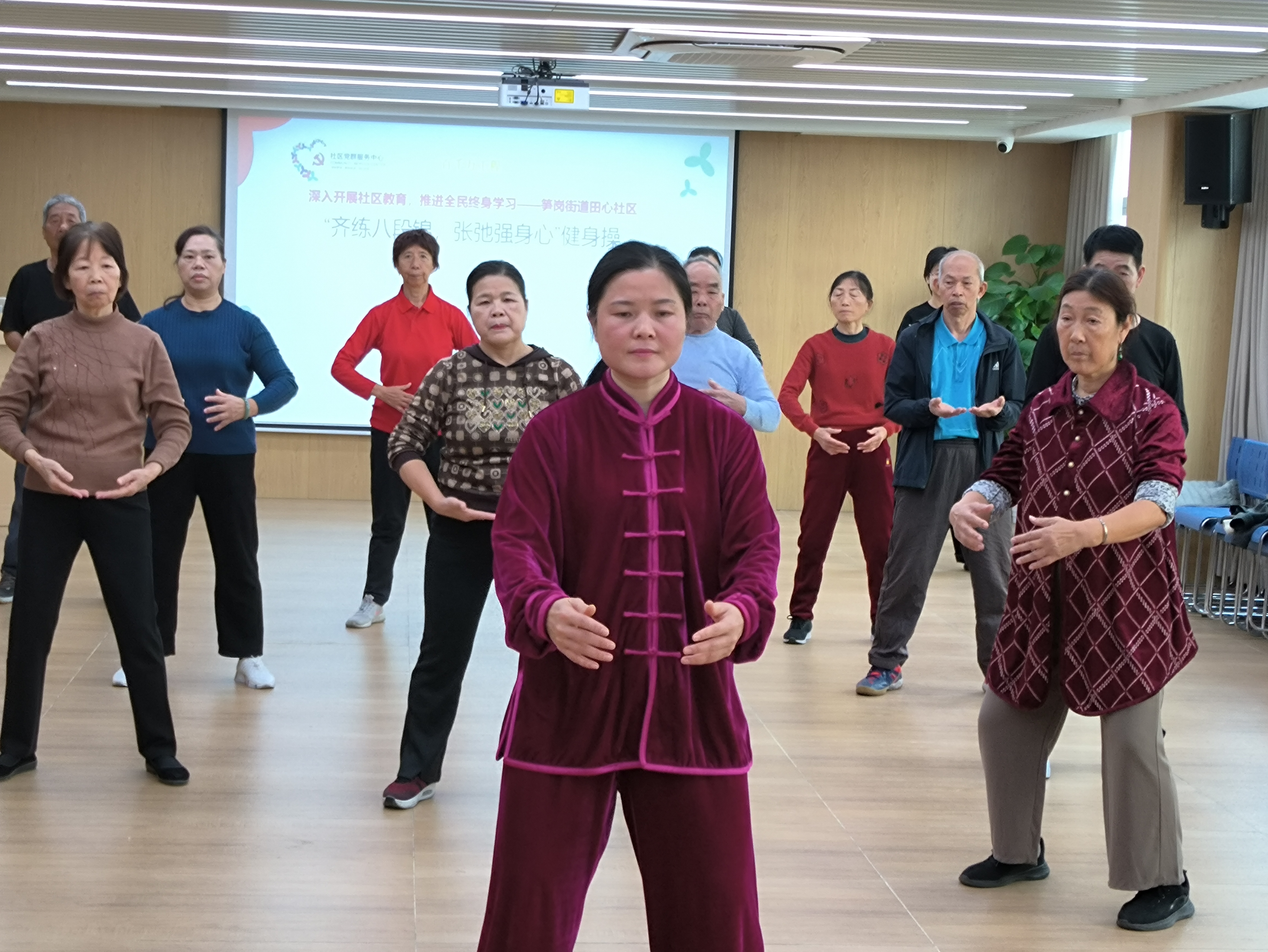 田心社区开展“齐练八段锦,张弛强身心”健身操公益活动