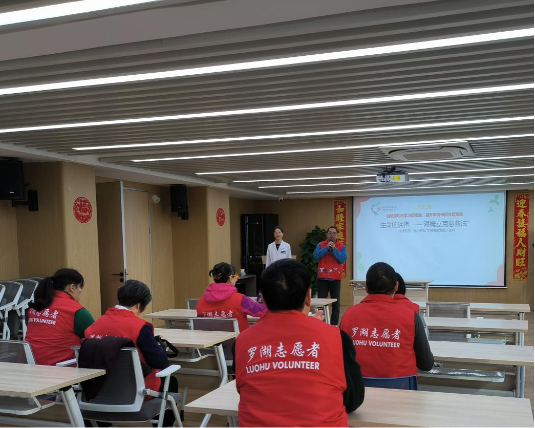 罗湖家园网讯:为帮助志愿者了解和掌握必备应急救护技能,提高自救互救意识,1月17日上午,在田心社区党委的指导下,田心社区党群服务中心联合博爱曙光医院为志愿者开展了一场“海姆立克急救法”实操练习能力提升培训。