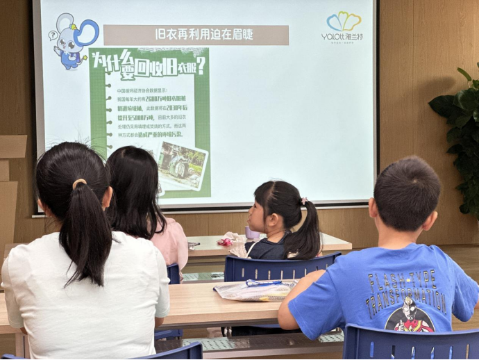 活动伊始,老师以生动有趣的图片和案例讲解纺织品的种类、生活用途等知识和互动问答开场,让孩子们在轻松的氛围中学习到了资源浪费的危害和循环利用的重要性。接着,老师介绍校服改造过程中需要用到的各种工具,重点教授便携式缝纫机的使用方法和技巧。