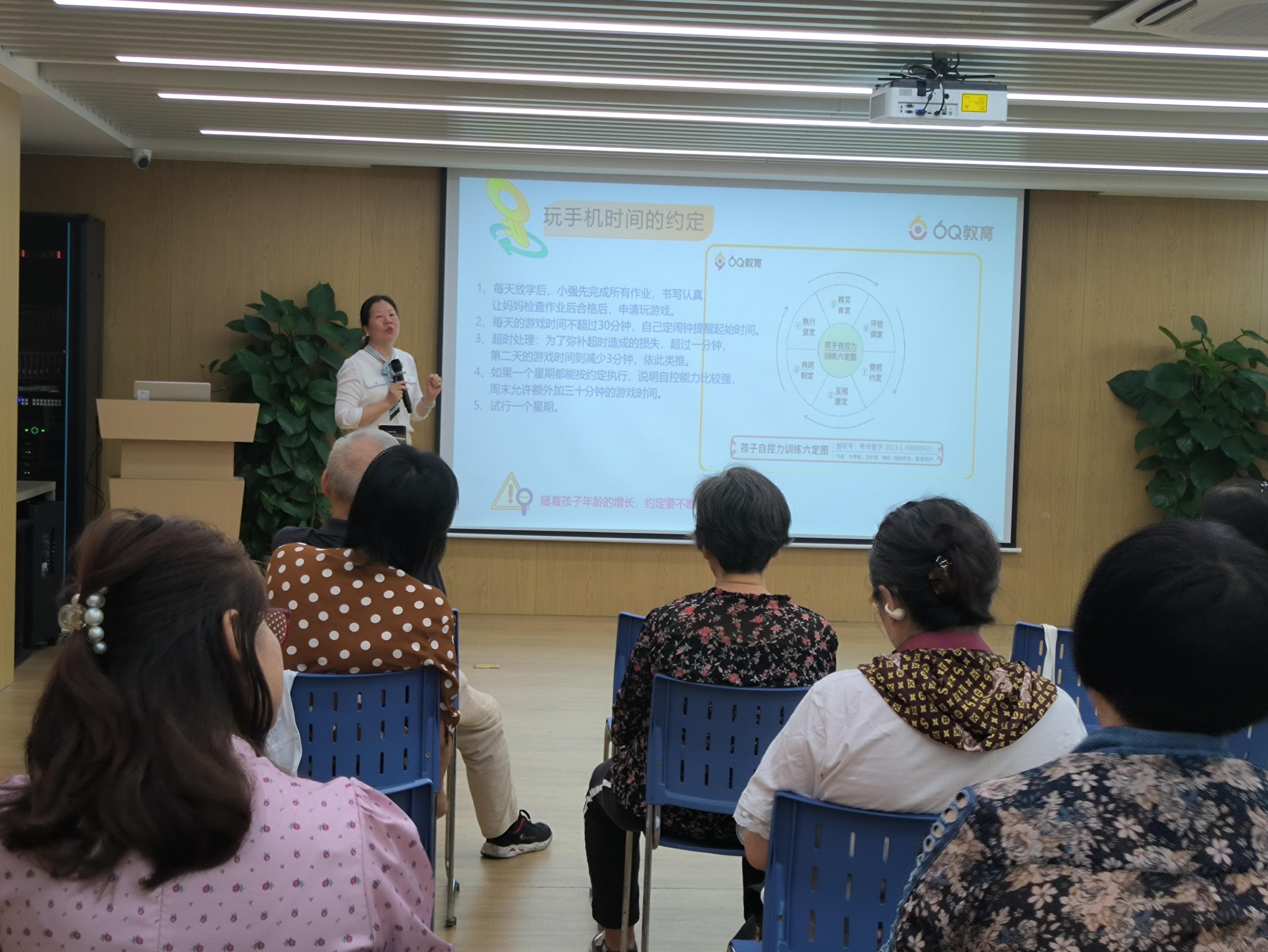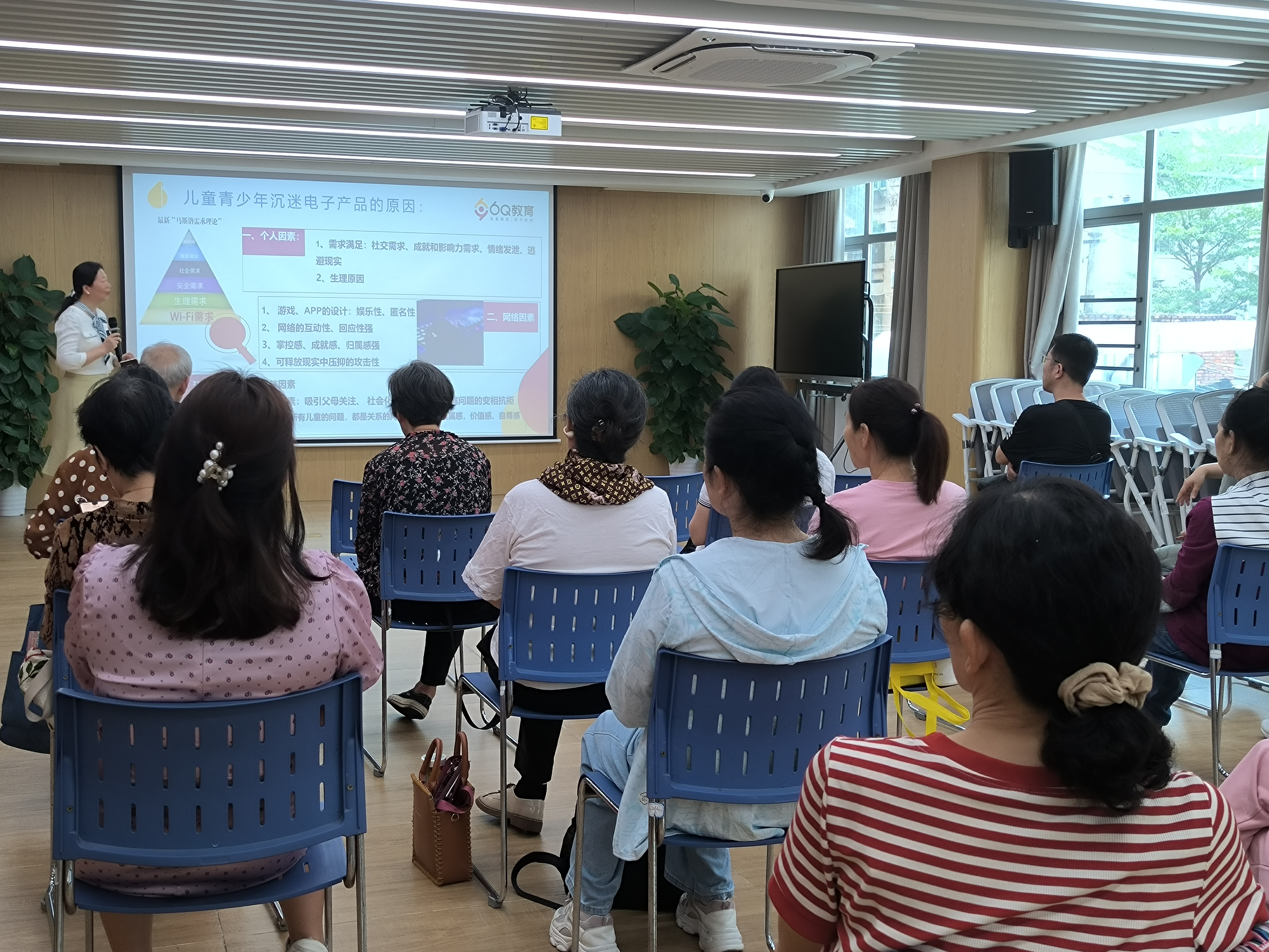 讲座开场,国家二级心理咨询师陈讲师展示的调查数据直击家长痛点:“超七成家长反映孩子沉迷手机、平板,甚至出现因限制使用电子产品而情绪失控的情况。” 台下家长纷纷点头。针对家长们的焦虑,陈老师从心理学角度分析并提出 “情感替代” 策略,建议家长每天抽出 30 分钟与孩子进行亲子阅读,通过共同探索故事、讨论情节,建立情感联结,让孩子从阅读中获得温暖与陪伴。
