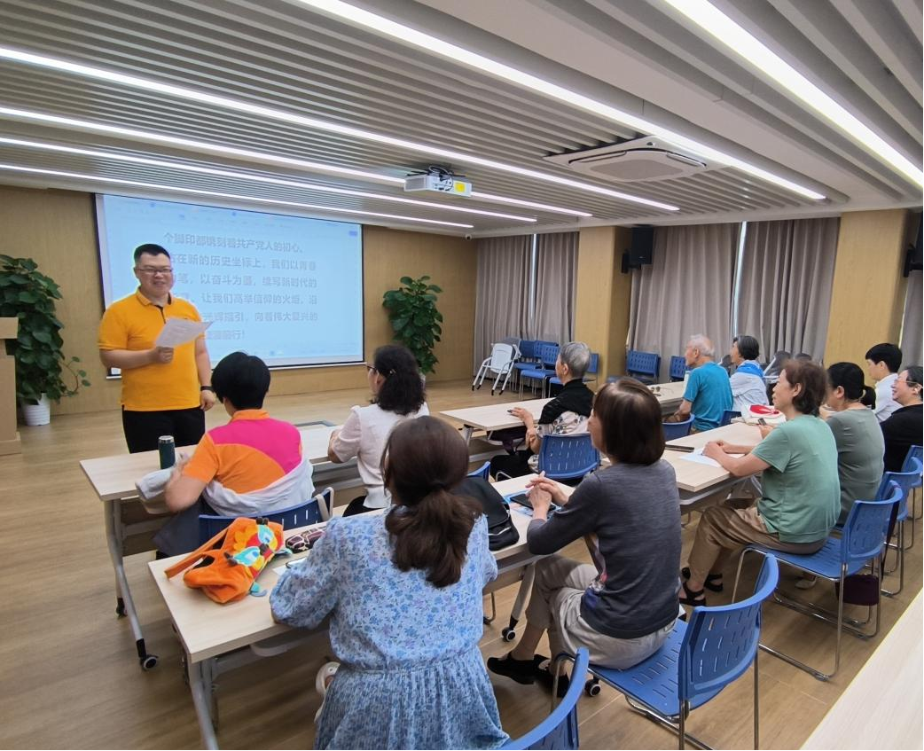 除了学习朗诵技巧,课堂上还穿插了庆祝建党诗歌朗诵环节,让长者们在提升朗诵水平的同时,也表达了对党的热诚之情。在朗读过程中,长者们声音洪亮,感情充沛,将诗词中的豪迈气势展现得淋漓尽致,现场气氛十分热烈。党员长者王叔激动地说:“通过朗读,表达了我们对党的拥护,让我又想起了当年入党宣誓的情景,真是太激动了!”