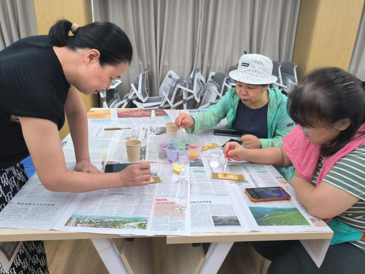 经过一个多小时的精心创作,并将作品烘干后,一张张普通的书签变成了色彩斑斓、充满个性的艺术作品。无论是卡通动物,还是各类花草,都是参与者的得意之作。居民们拿着自己的作品,纷纷拍照留念,脸上满是自豪与喜悦。携带孩子一起参加活动的李女士表示:"小朋友们和大人既能学手艺,又能交朋友,这样的活动太有意义了!