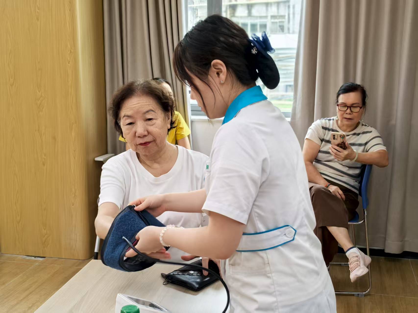 讲座结束后,社区爱心企业海王星辰还为居民们开展了血糖义诊服务。医护人员耐心地为居民测量血糖,详细询问他们的身体状况和生活习惯,并根据检测结果给予个性化的健康建议。居民们纷纷表示,这样的讲座和义诊非常实用,让他们学到了很多科学控糖的知识,也对自己的血糖情况有了更清晰的了解。