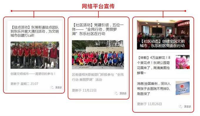 为普及文明城市创建知识,营造人人讲文明的舆论氛围,提高市民对文明城市创建工作的知晓率,不断提高城市文明水平和市民文明素养,在东乐社区党委的统一部署下,在辖区内设置宣传专栏,在人流量密集的学校、东湖客运站通过电子屏播放、网络平台(公众号、家园网、政务网)宣传等方式加大宣传力度,普及文明知识,引导市民积极行动,从身边做起,积极参与文明
