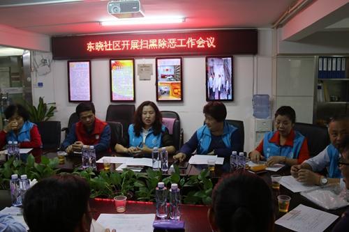按照市委要求,东晓社区党委为进一步推动党员群众广泛参与扫黑除恶专项斗争,社区党委作为最基层的党的领导组织,贯彻落实党中央关于扫黑除恶专项斗争,于5月7日下午,东晓街道党工委委员、东晓社区第一书记陈彦群列席社区党委会,部署扫黑除恶常态工作,制作、发布扫黑除恶宣传标语要严格“有黑扫黑、有恶除恶、有乱治乱”字样内容。社区党委要与辖区警务室联动,互通信息,加强黑恶乱线索的摸排。
