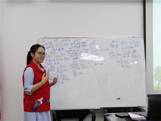 培训的开始,由社工带领义工们进行游戏互动,通过正能量满满的自我描述与接受他人评价,使成员在加深自我认识的同时感受到认同,促进团队的融合。接着进入培训主环节,通过知识讲解与话题讨论,带领义工围绕“什么是义工?”“义工的服务礼仪、义工的日常服务要点”等要点理解合格义工具备的素养和行为规范。