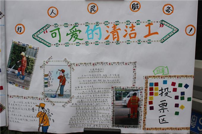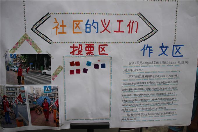 本次社区探索的主题为“我最爱的社区人物”,在陈列的作品中,有辛勤工作的环卫工人、有乐于助人的社区义工、有敬业爱岗的交通警察、有坚守职责的小区保安、有教书育人的老师、有一同成长的小伙伴……小记者们站在各自地作品旁,为前来观看的居民们认真的介绍他们心目中最喜爱的人物及他们的故事。