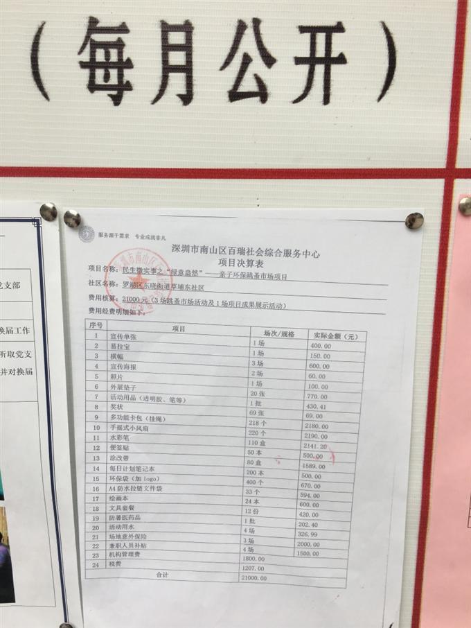 草埔东社区2018年民微项目《跳蚤市场》财务公示