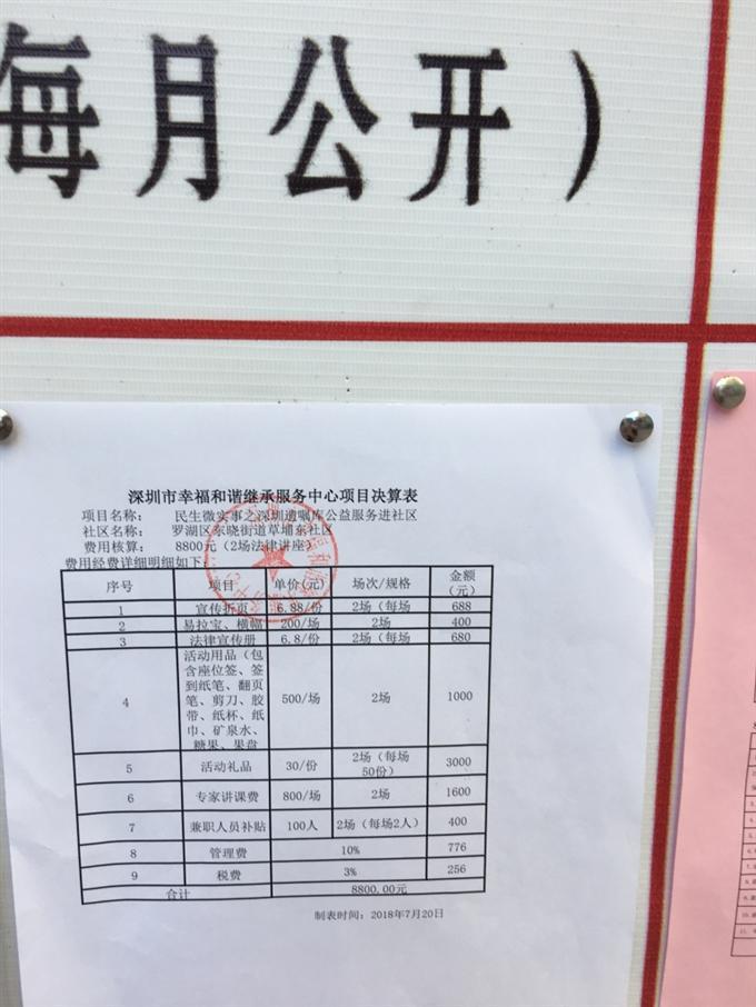 草埔东社区2018年民微《深圳遗嘱库公益服务进》财务公示