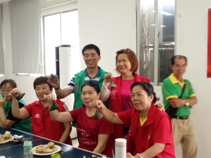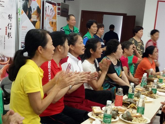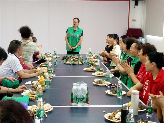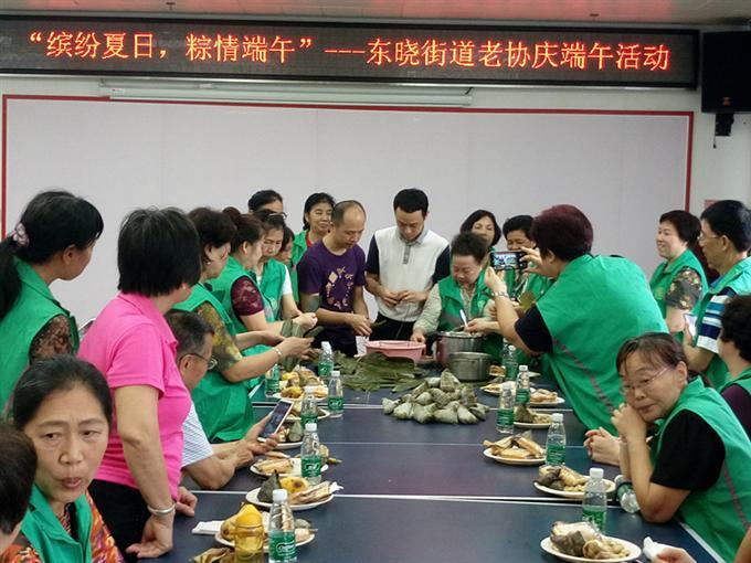 东晓街道民生事务科副部长罗楚龙参与此次活动。活动开始,罗部长现场致词,向大家致以了节日的祝福,并感谢大家齐聚一堂来参与,同时对东晓街道老协工作予以支持和肯定,希望在党和政府的领导下,“不忘初心,牢记使命”,把东晓街道老协工作向前推进。接着罗部长和大家一起动手包粽子,大家围成一个圈,开始“大展身手”起来。包粽子的形状不一,有三角的有四角的。就连缠绕绳子的方法也有不同。大家互相传教方法,每个人都乐在其中。 包完粽子东晓街道老协姚会长带领大家一起唱红歌,把现场的气氛推向高潮。