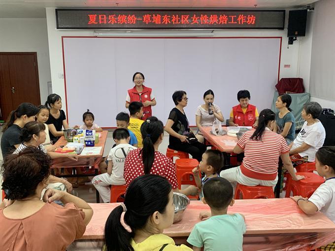 2019年7月18日下午,东晓街道草埔东社区党群服务中心开展了夏日乐缤纷---草埔东社区女性烘焙工作坊,社区女性一起制作曲奇饼干,互相交流,共享生活的乐趣。