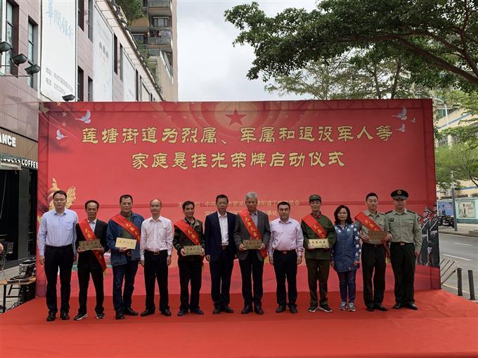 2019年4月4日上午 鹏兴社区 党委书记 罗思诚参加 莲塘街道为 烈属、军属和退役军人等家庭悬挂光荣牌启动仪式。